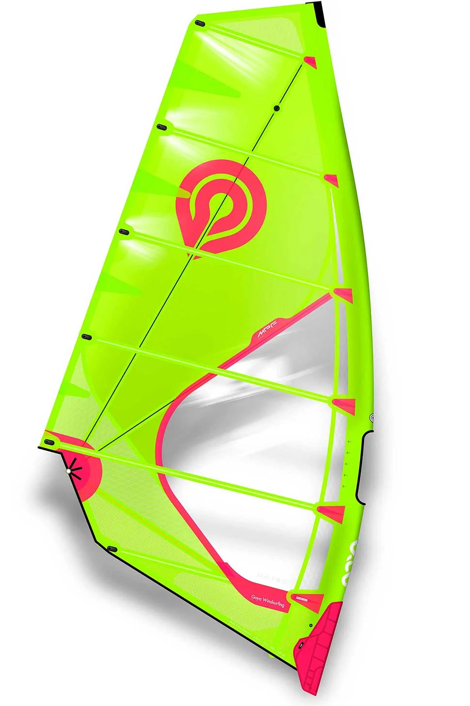 Unrolling the Mark B, you are instantly struck by its bold and bright colour scheme thanks to its fluorescent yellow and pink detailing and a large clear monofilm window which spreads across three panels. The Mark B certainly looks awesome and brightens up a grey and dreary beach. When it comes to rigging, the Mark B is simple and easy to setup correctly. With a 6-batten outline and a strong draft set down around the boom, there is room for the Mark B to open up and deliver power as it expands and fills. Up top, the Mark B shows a generous amount of fall away at the leech, ready to breathe, tune, and absorb gusts and lulls for the rider. X-Ply runs the length of the luff sleeve to provide stable load distribution, while along the foot, up and around the clew, and at the very top of the Mark B, Bi-Ply is positioned to maintain strength and load distribution in areas of higher stress. Sticking with the theme of load distribution, three carbon load stringers radiate out from the single titanium clew eyelet. With a truncated boom length to reduce its overall length, every effort has been made with the Mark B to provide power, while still maintaining stability throughout the sail.