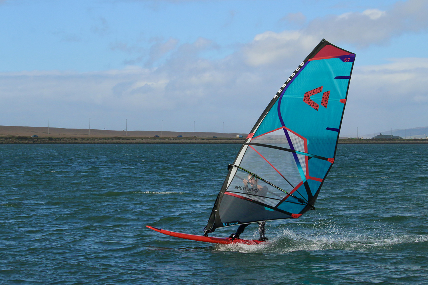The Super_Star remains in the Duotone range for 2022, classed as their “Wave Draft Forward” offering, making a clear distinction from the draft centred Super_Hero, tested earlier this season in our 5.0m wave sail test. There have been some significant updates for the new season however, adopting the brand’s “Light Done Right” construction concept, with a claimed reduction of between 200-300 grams in each size, and no depreciation in durability or longevity (a statement bolstered with the continuation of the 2+3-year warranty provision). This weight saving is attributed to a refinement in panel layout and reinforcement patches, including the use of a high-strength, high-modulus fibre, sourced from a German supplier. It is also thanks to the use of the brand’s new ‘One Piece Sleeve’ design, using a single length of material for the luff sleeve. Duotone claim this has the added benefit of integrating “precise elasticity” into the sail’s performance, allowing more accurate tuning, a more “harmonious reflex” response and eliminating any need for a Dacron luff panel. With the same materials and construction techniques as its Super_Hero stablemate, the Super_Star is every bit the wave sail for the most challenging conditions, championing a four-batten layout in all bar the 6.2m. It is available in its standard grey/turquoise colourway, as tested here, a Stargazer option, in homage to its iconic predecessor of the early noughties, or a new SLS (Strong Light Superior) construction. The SLS version uses new materials such as a carbon x-ply (in the clew panel) and their own X-Ply.Plus in the main panels (with a thickness of just 100 or 150 microns), to ensure the same lightness as a membrane sail, but without any of the durability or response impositions. One final point worthy of mention, Duotone regretfully note that the increments printed on their Super_Star wave sails are incorrect due to a corrupted file at the time of production. The correct dimensions are stated on their website.