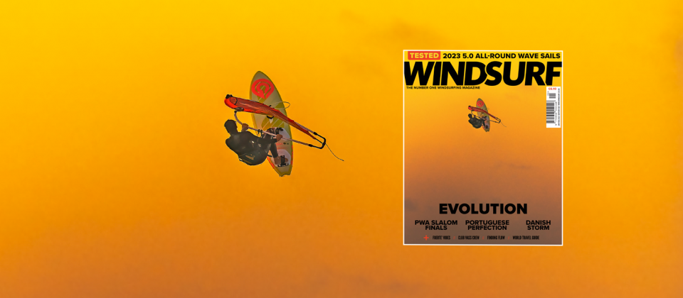 Evolution – PWA Slalom finals; Danish storm session; Traversa’s Portuguese perfection; Tested – 2023 5.0 All-Round wave sails; Fuerte’ vibes; Club Vass crew; Harty on finding your flow; World travel guide; Jem Hall’s small changes for big gains; Streedagh beach spot guide.