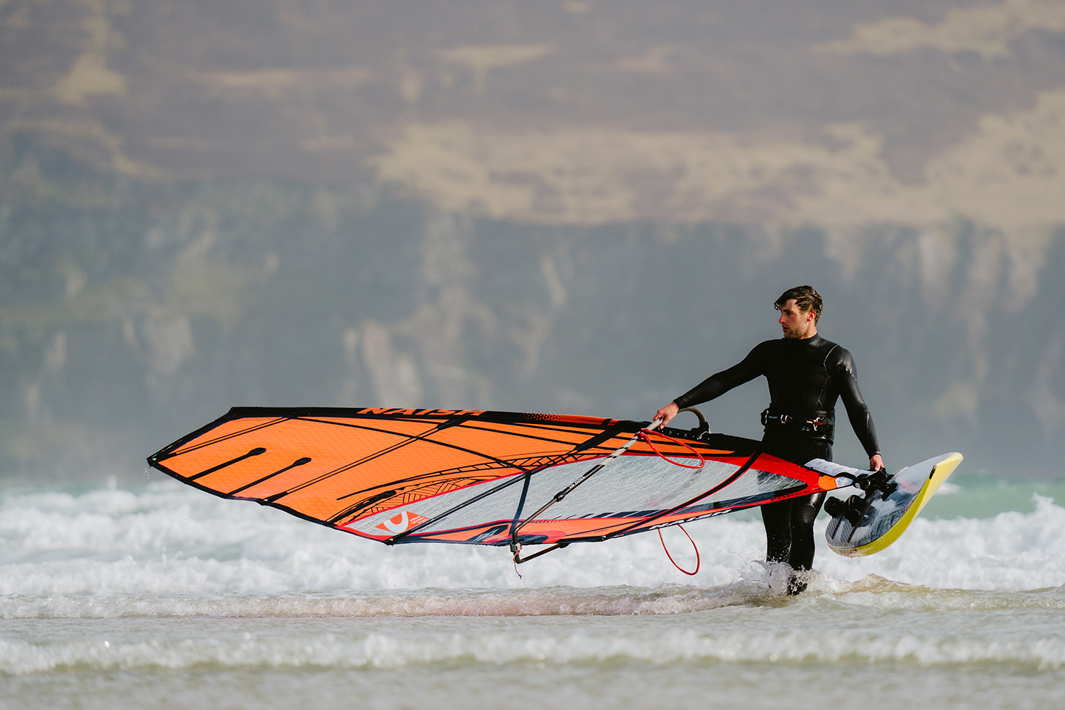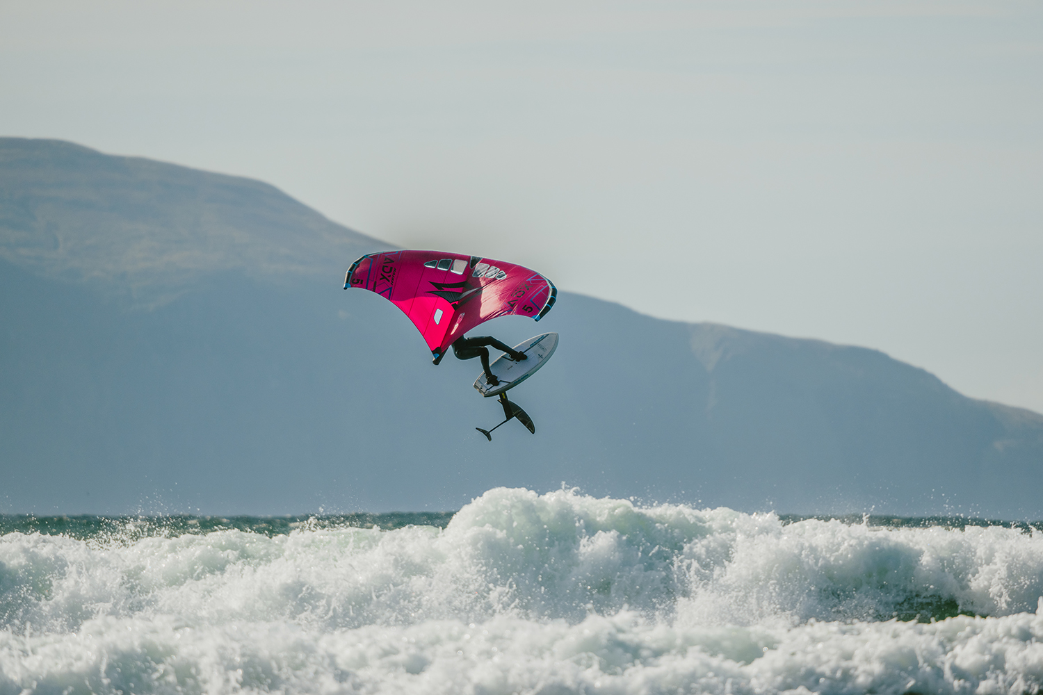 The forecast for the next days looked promising and we decided to head to Keel Beach for some proper action. After an early morning sunrise shoot we got invited by Francois from Pure Magic to have a good Irish breakfast at their lodge and recharge for the afternoon. In the afternoon we went to Keel Lake to get the wing shots done. With offshore winds the lake is a flat-water paradise and with just a few other (crazy) watersports enthusiasts daring to face the cold conditions, Henri, Stig Hoefnagel and Jeanne Vanderick had a great session and lots of fun with the locals.