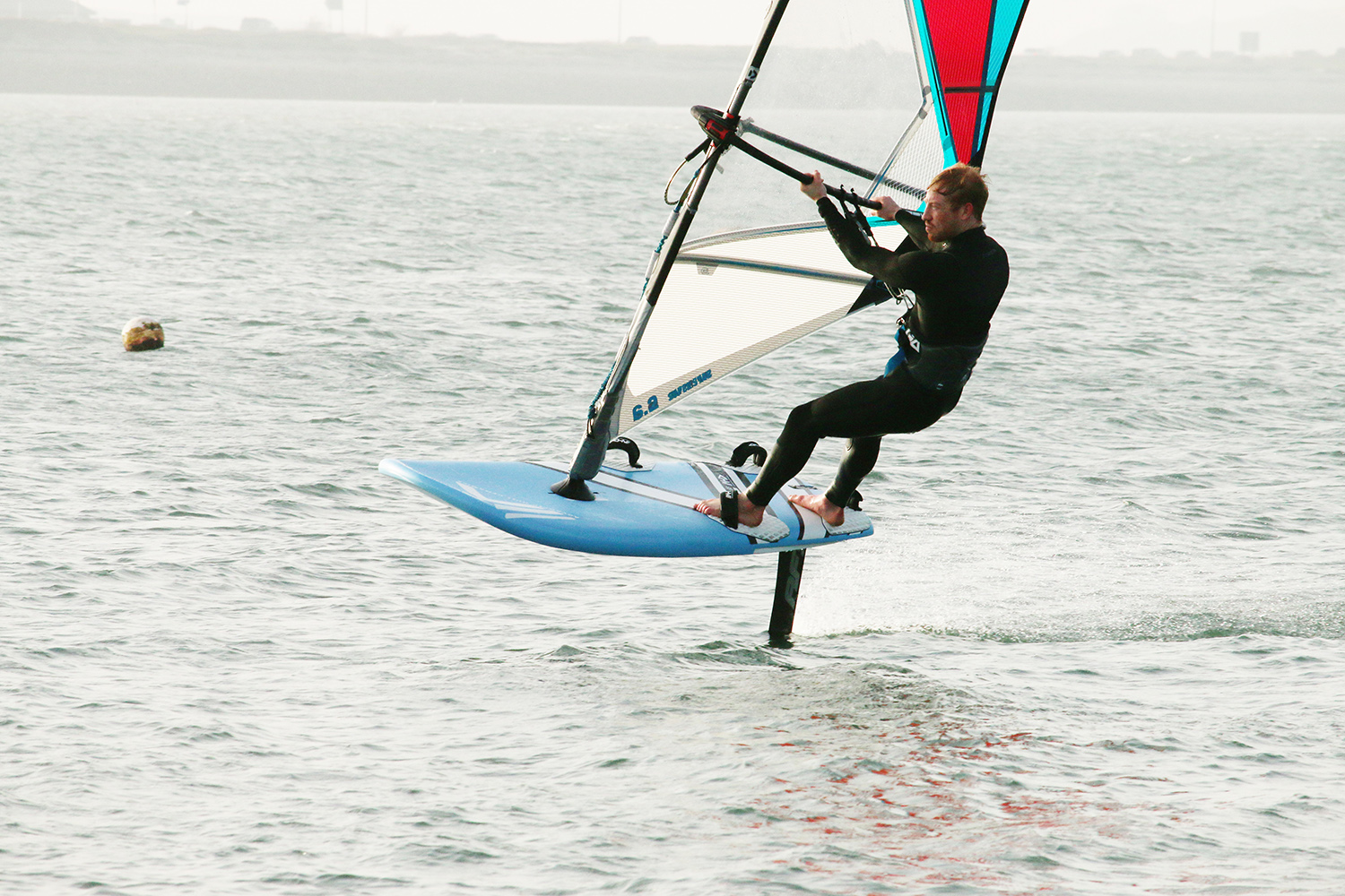 Using the 900 front wing initially, it is certainly powerful, generating plenty of low-end lift. All AFS new wings are designed and developed by the UK’s own Kevin Ellway – whose experience in the world of foiling is second to none. The 900 front wing itself has a new profile, similar to that seen on the foils of an America’s Cup yacht, intended for increased glide whilst reducing drag. And it works well! The initial get-go takes more input from the rider than many ‘freeride-oriented’ foils reviewed here – this AFS is undoubtedly more freerace focussed … and more. Turning off the wind at the right time; good pumping technique or ploughing power into the board to help unstick it from the water, it soon gets the idea. Once flying, it is certainly within the realms of the ambitious novice foiler. It feels supremely balanced and stable, its ride-height easily maintained and governed by the rider. The AFS is also fast, capable of pointing high or going deep, but more importantly for the recreational sailor, comfortable on a reach too. It does encourage a committed foil-specific stance, leaning forward over the front foot, the extra 10cm of mast length a welcomed asset as you’re encouraged to push harder to explore its potential.