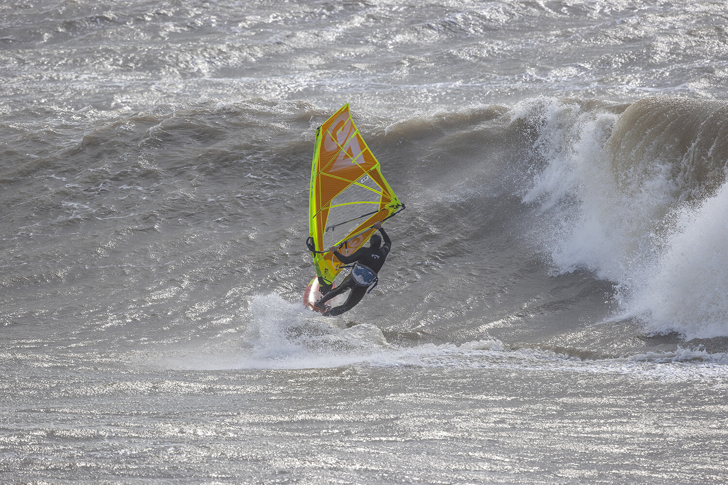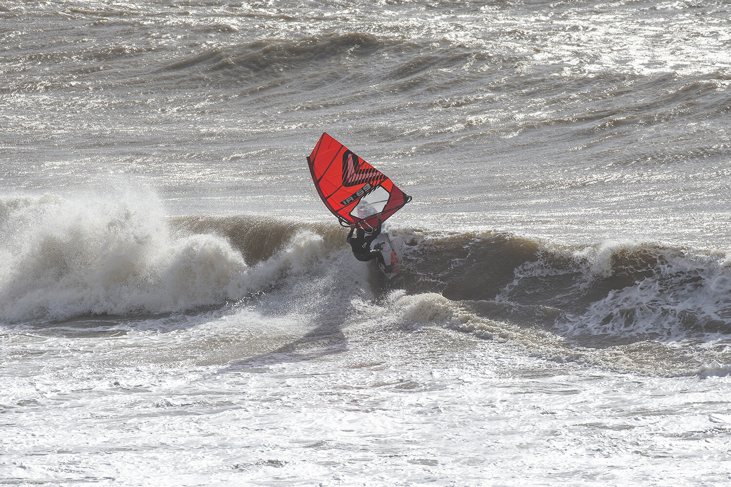This is a nice shot. The sail is loaded up with power and I am hitting the section, even though the wave is quite choppy.