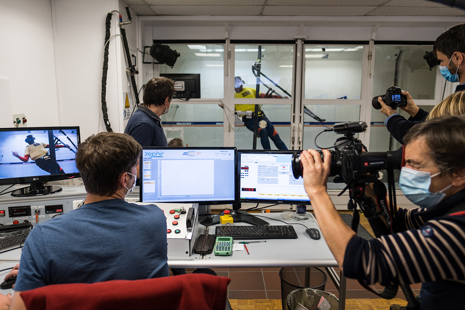 The Zephir Project kick-off took place in wind tunnels last December 2020. Our objective was to understand aerodynamic components at high speed (generated forces, sail deformations, pilot drag, potential gains and digital simulation assistance). Antoine was supported by Eric Barone, mountain bike world speed record holder who prepared his records in the same wind tunnels, and by Pierre Schmitz, 14-year old French windsurfer and Zephir test pilot.