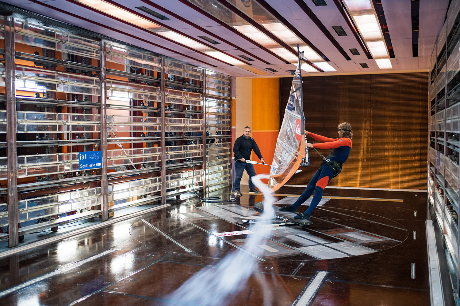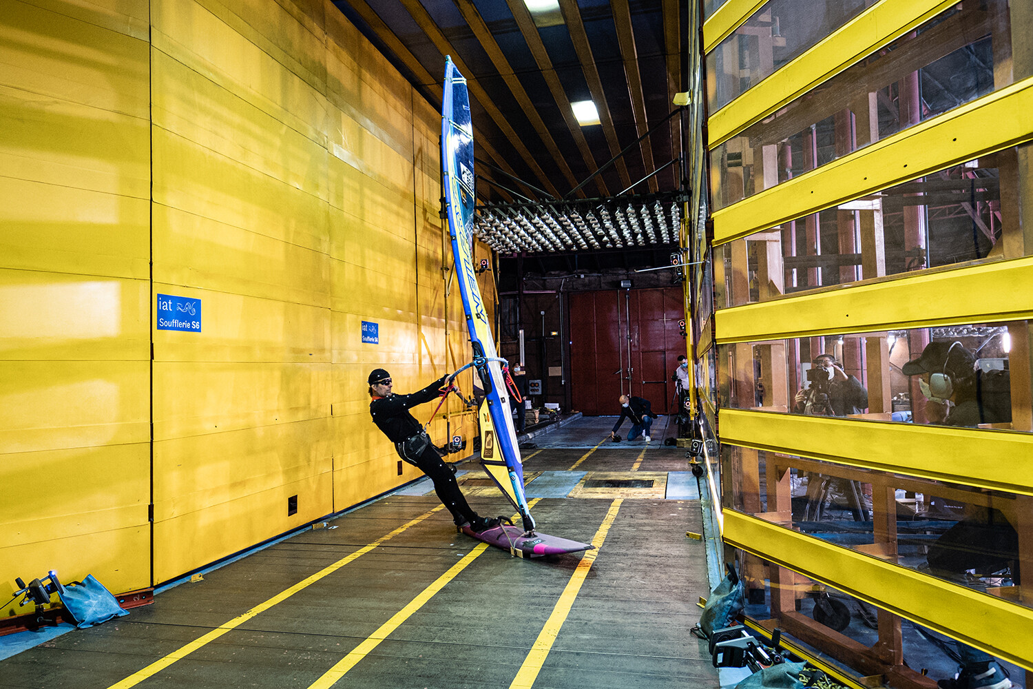 On December 7th and 8th, the team continued to explore at the Aero Technical Institute (IAT) wind tunnels near Paris. Antoine tested in those wind tunnels the windsurfing equipment he used during his word speed records. Using digital technologies from the film industry, the team captured data on positioning for the pilot and the windsurfing system. We also tested the prototype wing engineered at Centrale Lyon 30 years ago. Various concept sails and wings engineered by Robert Stroj (Neil Pryde designer) were tested by Antoine as well.