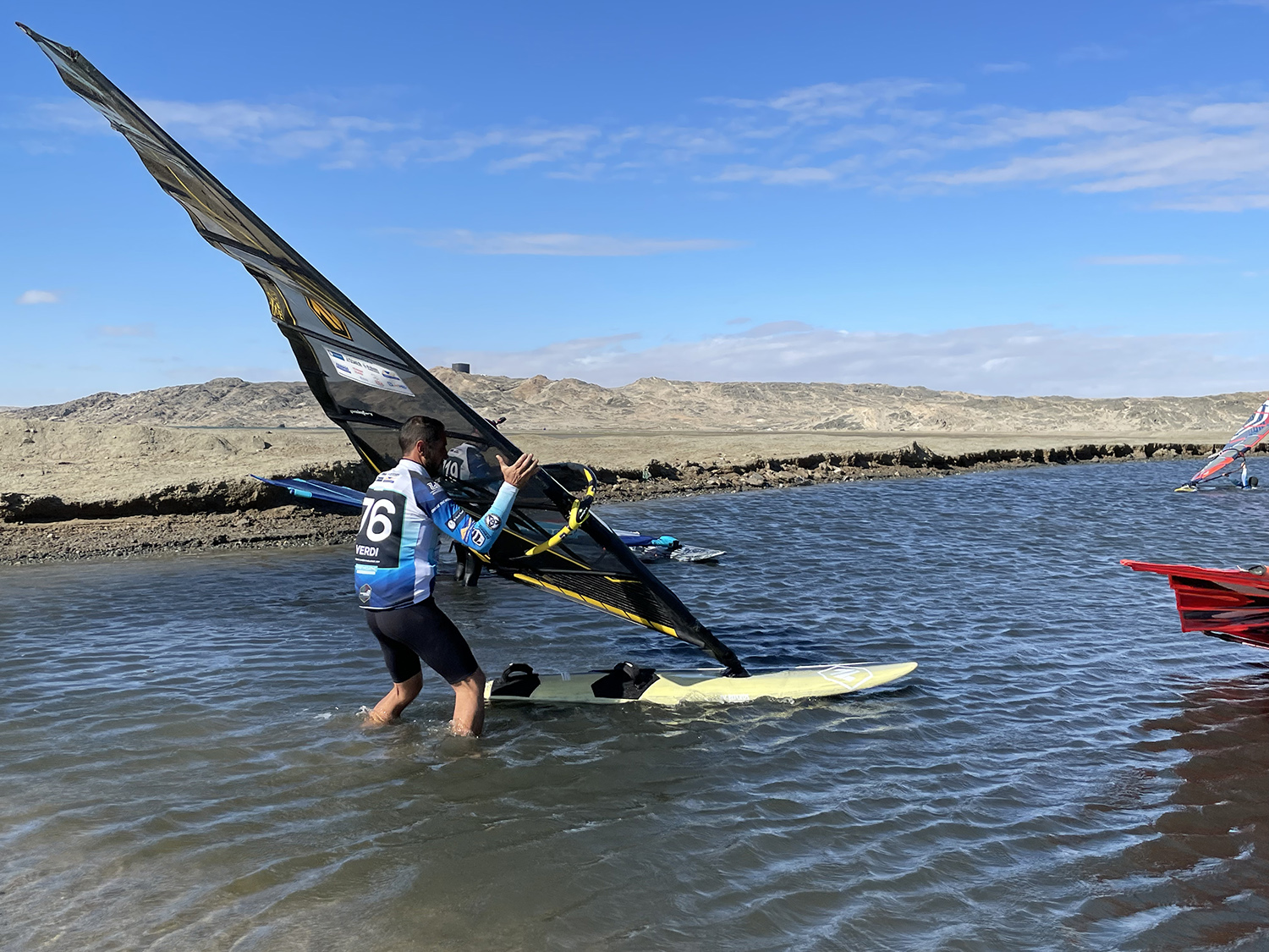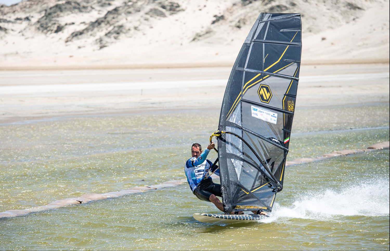 In fact, when I started to rig my sails and put the asymmetrical fin under my new 38 cm wide board (I’m 78 kg), I started feeling pretty weird. From the very first run I began to understand that my normal stance was wrong, everything I already knew was not enough to race there, and I spent the first few days just learning how to trim and tune everything. And it was thanks to Alberto and the tips of all the other riders that I eventually learned how to go fast down the channel.