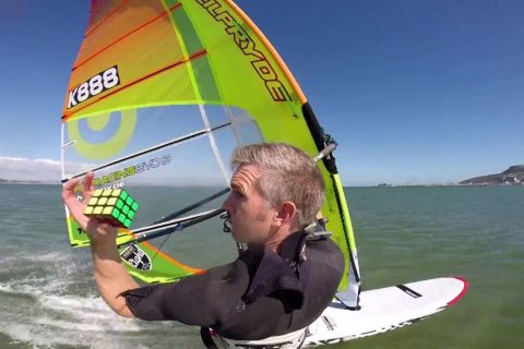 SOLVING THE RUBIK’S CUBE ONE-HANDED WHILST WINDSURFING