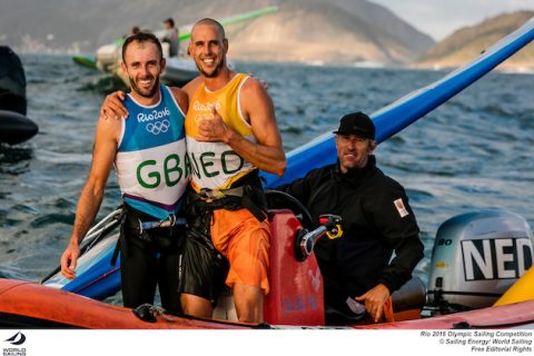 RIO OLYMPIC WINDSURFING DAY 5 VAN RIJSSELBERGE AND DEMPSEY MEDAL