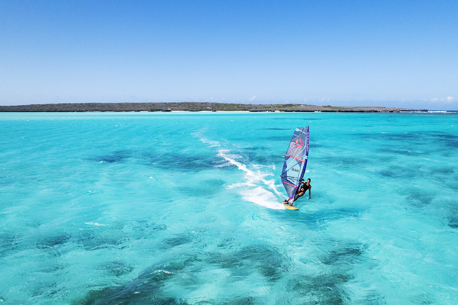 La Piscine offers the flattest water with the best water clarity I have ever experienced in my life. My main passion may be wave riding, but I loved spending days here simply cruising in its crystal clear waters. La Piscine boasts an abundant underwater world with vibrant coral heads providing the perfect environment for a rich and diverse marine life. With the foil you need to be aware of these coral heads and carefully pick your route, but with water clarity of this quality it’s easy to navigate your way through. By the shore, the water is so flat that it offers world class freestyle, while the sand is so white that you can’t help but chase your shadow. La Piscine was without doubt our favourite place to shoot with its incredible makeup of colours.