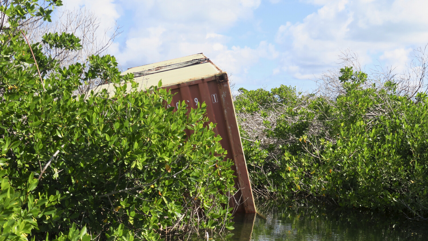 Between two sessions, we visit the ‘Frigate bird’ sanctuary in the Codrington Lagoon, the largest in the Caribbean. Georges Jeffrey, the best-known guide on the island, also a lobster fisherman, reveals the secrets of his island and its lagoon at the helm of his long flat boat. Here in the warm waters of the lagoon, lobsters and many other fish come to breed. He explains that after Irma, the government of Antigua wanted to relocate the population of the island, not only to help the population recover from the cyclone, but also to develop a mega yacht project in the lagoon. Fortunately, almost all inhabitants of the island have returned to their territory and have contributed to the sustainability of this magnificent ecosystem. Georges stops quickly in front of the mangrove to show us the effects of the category 5 hurricane. There in the middle of the plucked mangrove, a shipping container lies in a few feet of water. It would have flown 2 kilometres in the air to reach here!