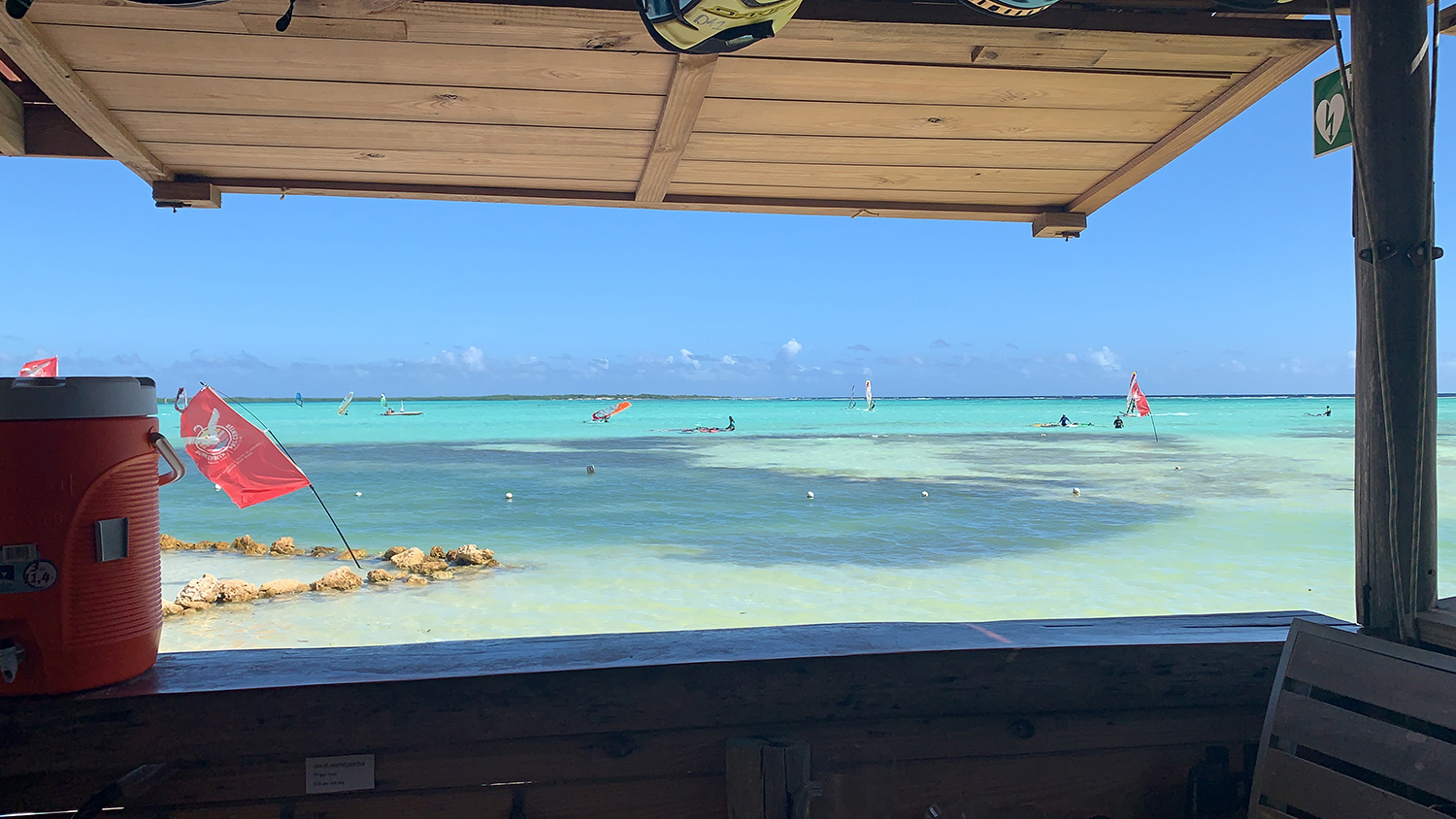 Let’s get to the best part and that is the windsurfing. People mostly windsurf in Lac Bay. The water depth depends on the tide, but it is usually just waist deep. The windy period is from mid December to August with winds around 15 – 20 knots. The direction of the wind is always onshore and the bay is separated from the open ocean by a small coral barrier. There are 2 peninsulas: Lac Cai and Sorobon. Lac Cai is home to sea turtles and mangroves and Sorobon is the place where all the windsurf schools are located. There are 4 windsurf schools – Dunkerbeck Pro Centre, Jibe City, Windsurf Palace, and The Frans Paradise, owned by the two very popular professional windsurfers – Taty and Tonky Frans. There are many different brands for hire in these various windsurf centres, so something for everyone!