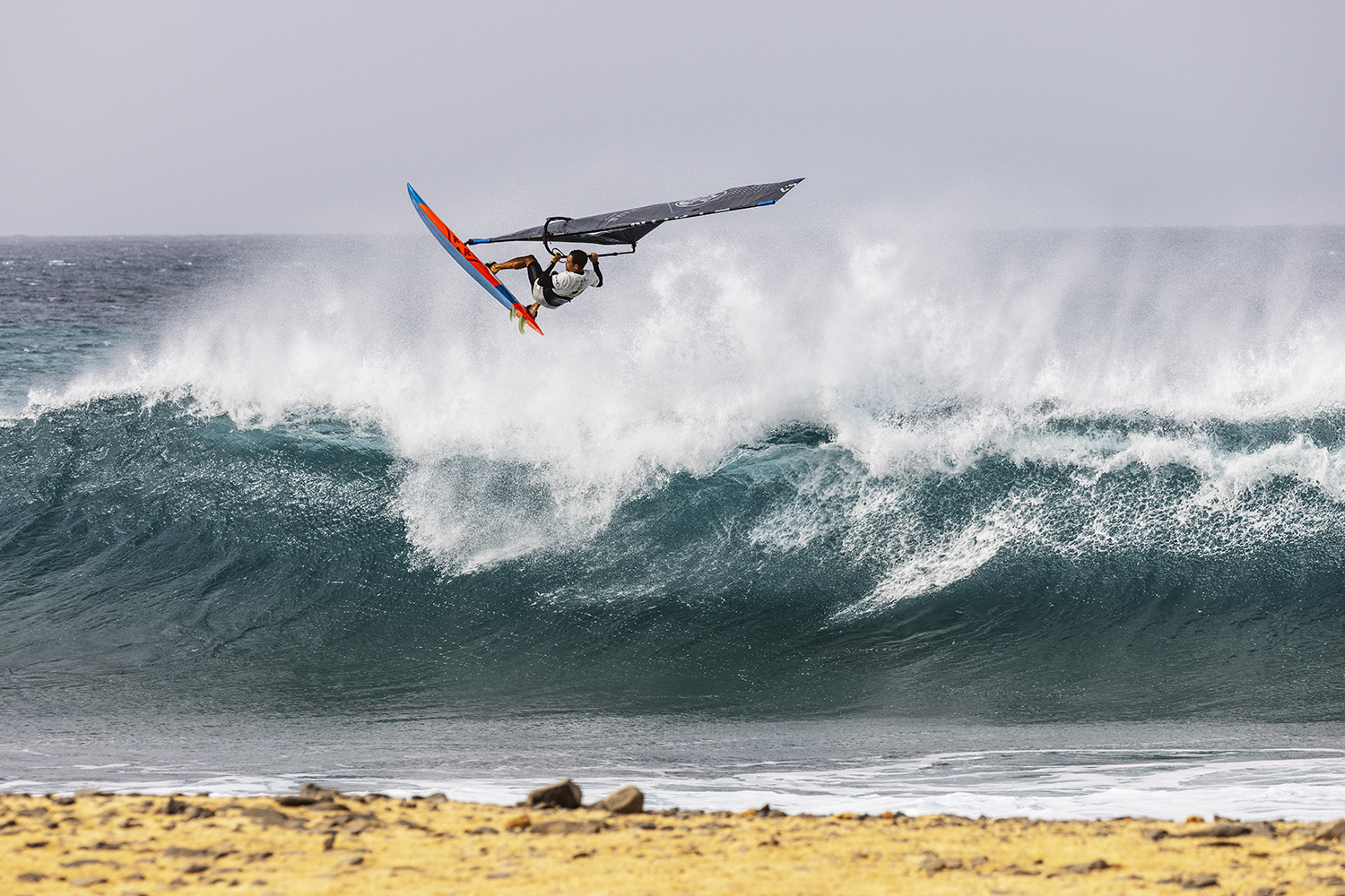 That process was the new balance that Cabo Verde will bring to this year’s PWA World Tour. Down the line wave riding is as critical a discipline to consider as high wind jumping in terms of world title contention. Nobody would argue Cabo Verde has some of the best down the line setups anywhere. It’s a blessing to ride Ponta Preta in any situation one is able to, as a lot of specific factors need to come together. While conditions never quite reached levels previously seen in events of past years, there were more than several instances where someone would catch a set wave, proceed to tear it to bits, then launch a huge air, land it and connect it all the way, dodging rocks and reminding us all how wave sailing continues to evolve and transform the perception of how waves can be ridden.