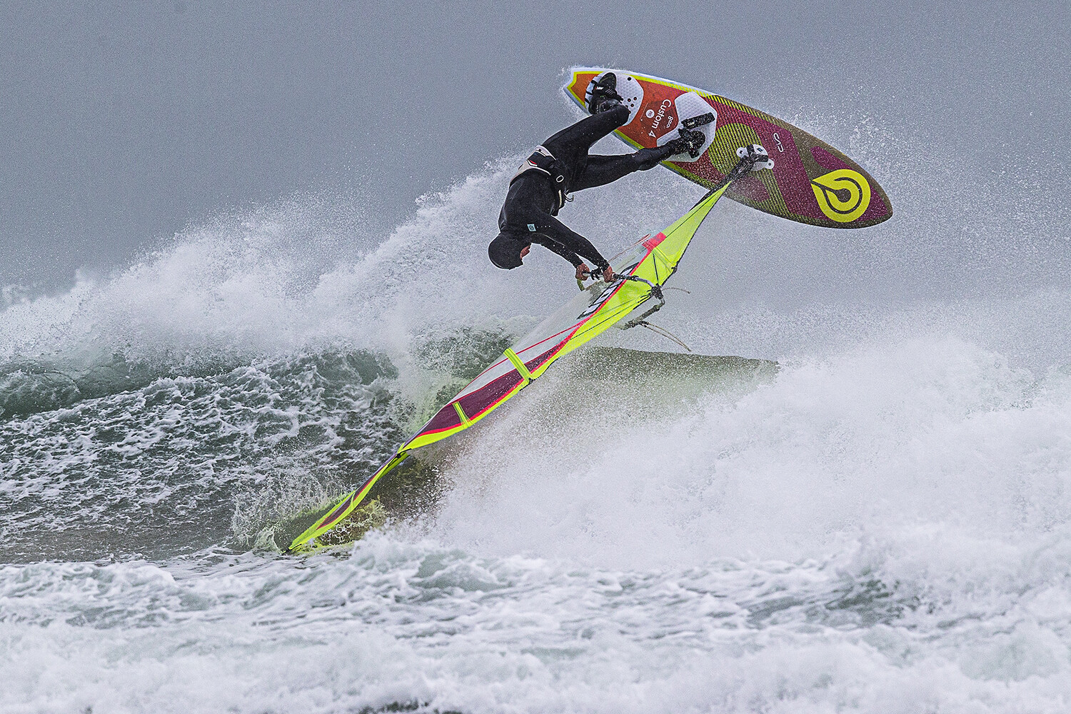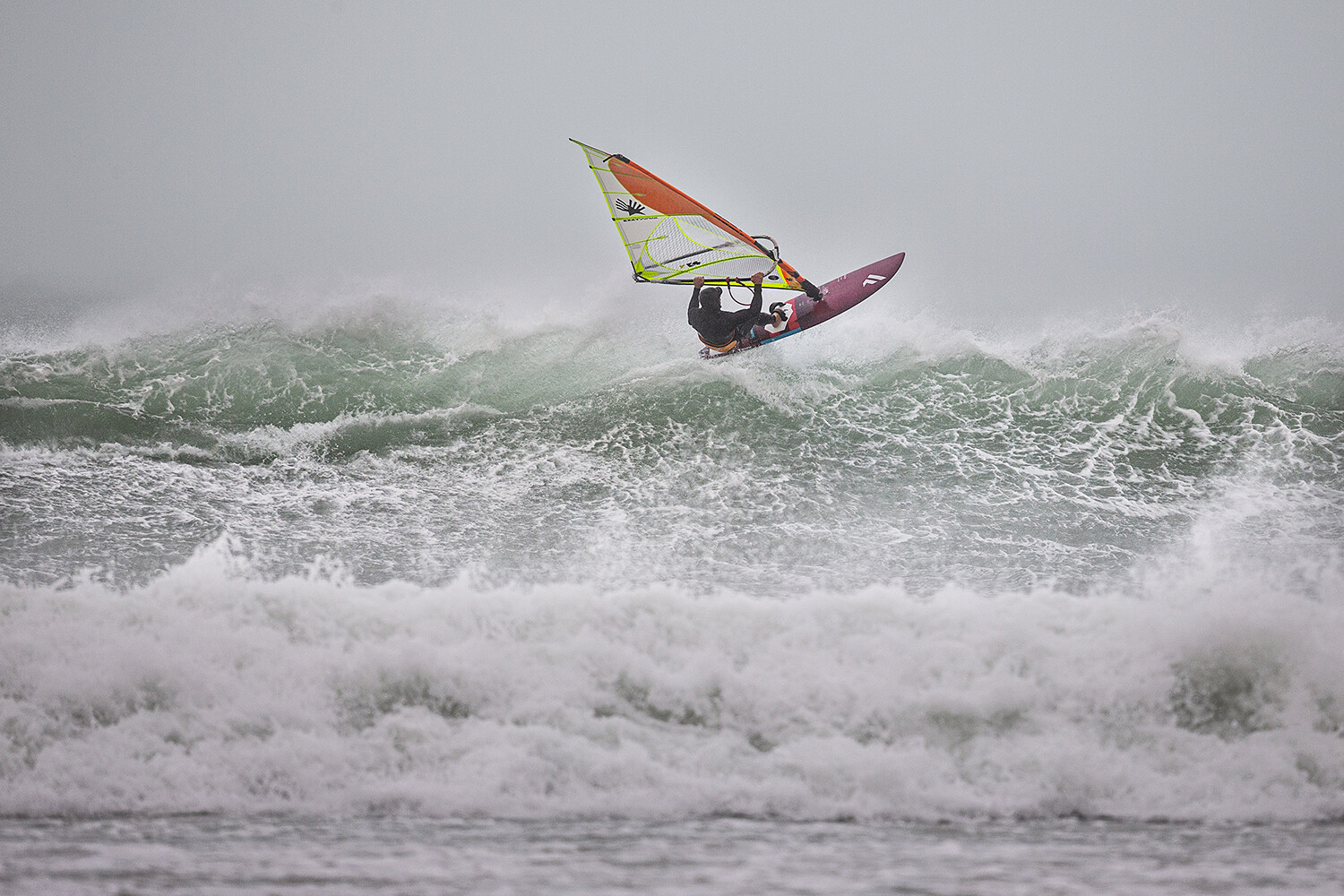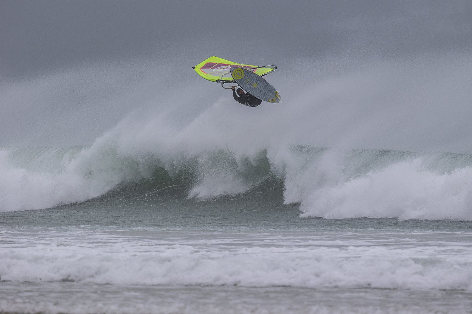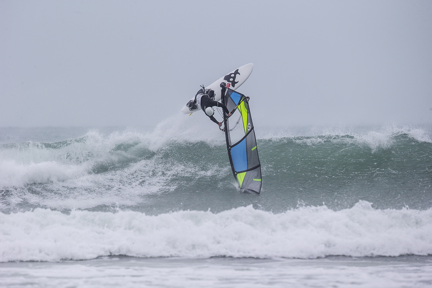 I use Five Oceans sails, which used to be made here in Cornwall by Matthew Burridge, but he has now moved across the channel to be based in Brittany. I help give Matthew feedback on his new designs with an aim to develop a really good all-round performance wave sail, one design that is just at home in mast high cross-off Gwithian as it is hammering out at cross-on Mazza, skimming over masses of foamy reforms to finally find a hooky launch ramp to boost off. Matthew has such a great set of skills, knowledge and a real understanding of sail performance, which is way over my head, but I try to just give structured feedback on how I find the differences in performance and feel and the resulting sails have been amazing.