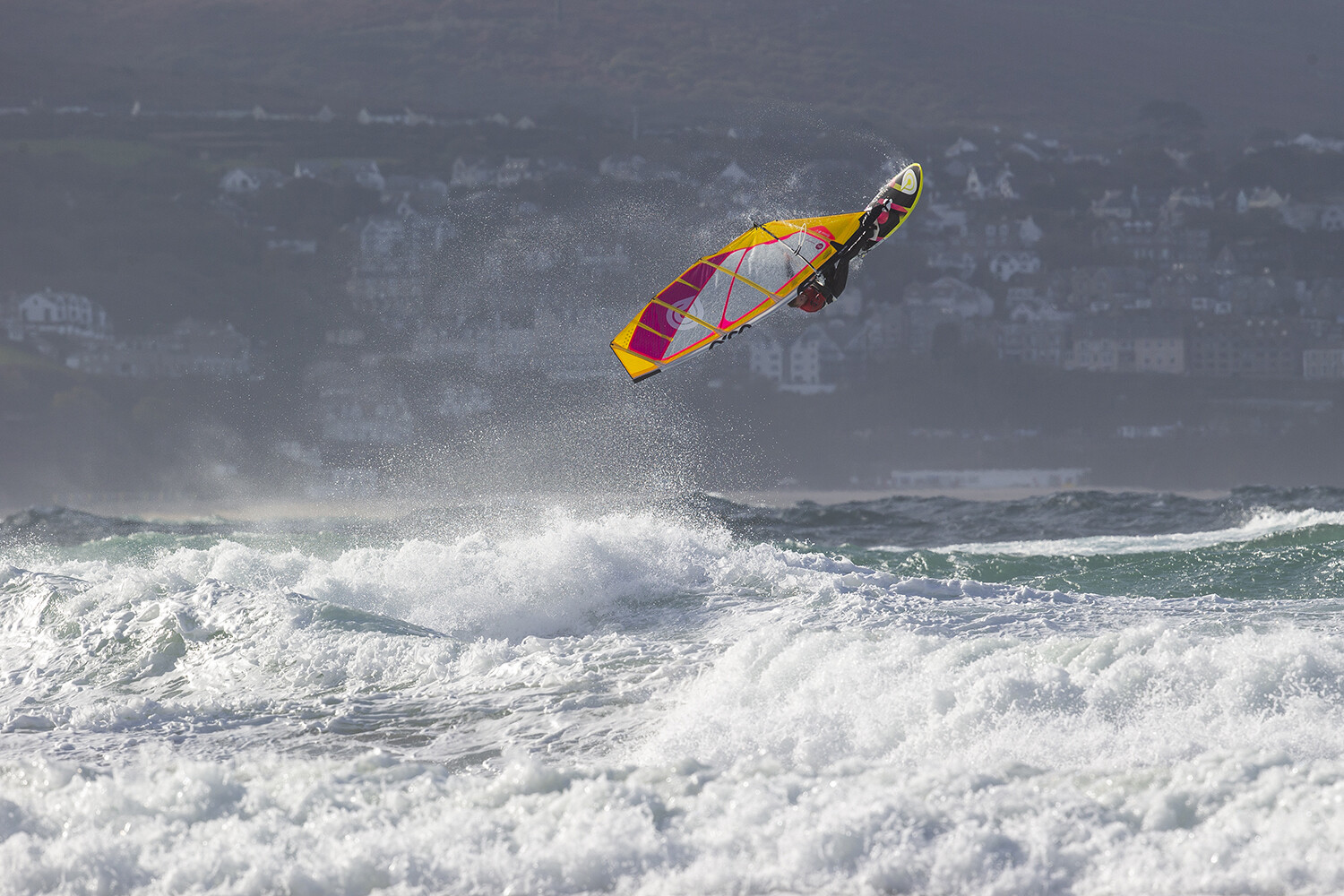 Any windy day I enjoy, I try not to be fussy. If I can land one back loop then it was a good session, if it’s not raining or too cold it’s a bonus, but I’ll take whatever is on offer once I arrive at the beach. Dream day would be 35 knots side-shore starboard tack with head to logo waves, but that’s few and far between in Cornwall, so I’ll settle for logo-high port tack cross-off down-the-line as long as there’s a cheeky make or break back loop opportunity now and again.