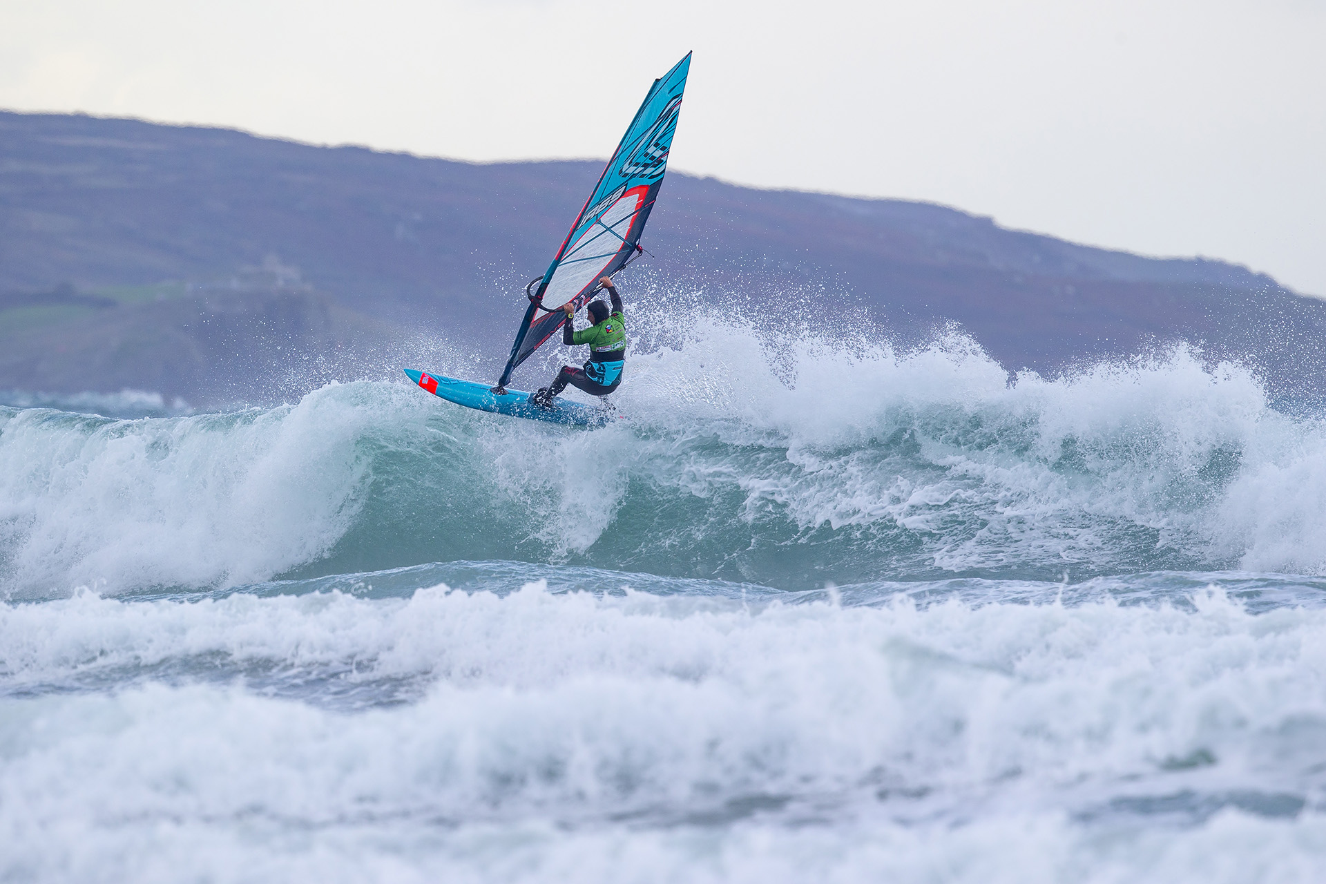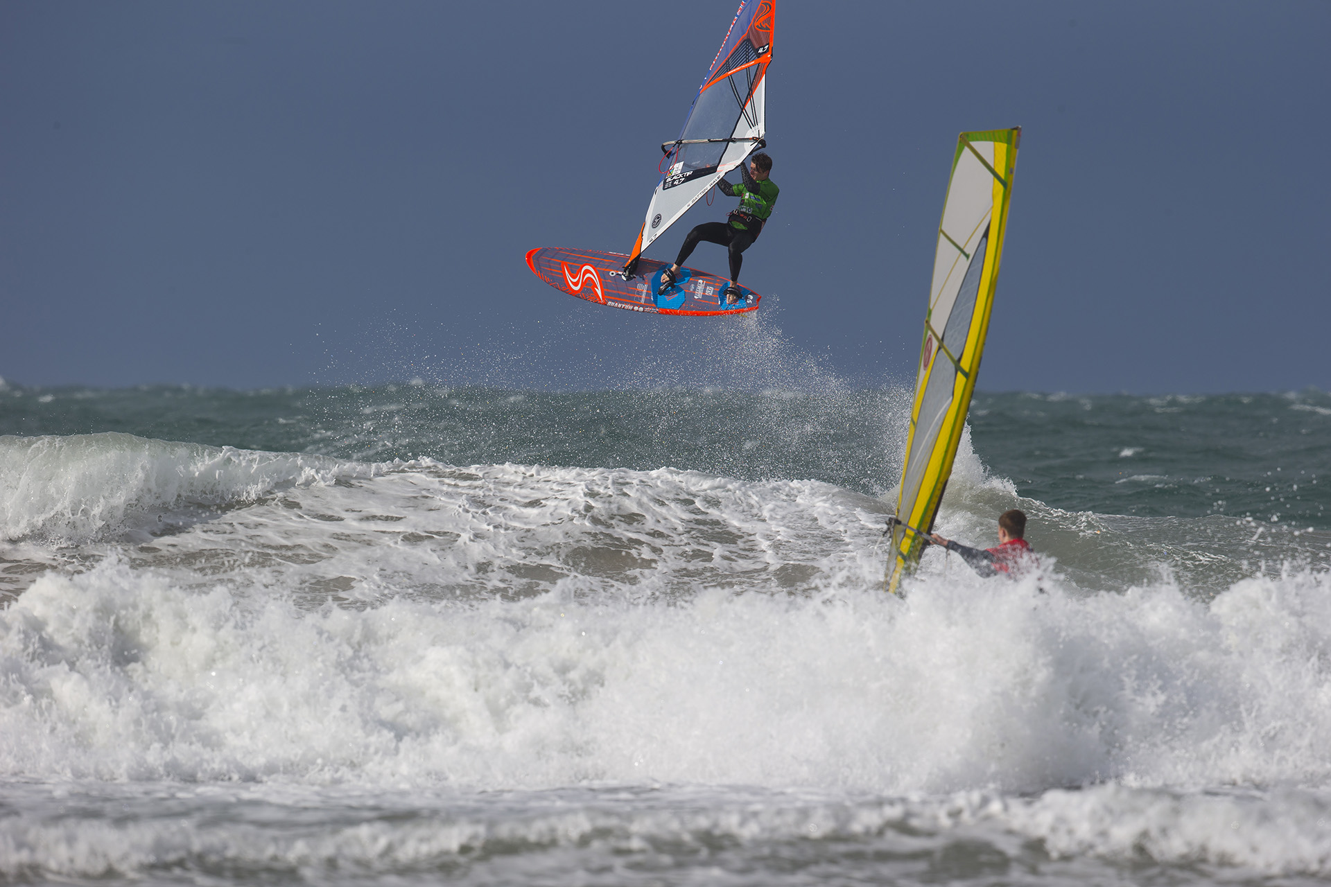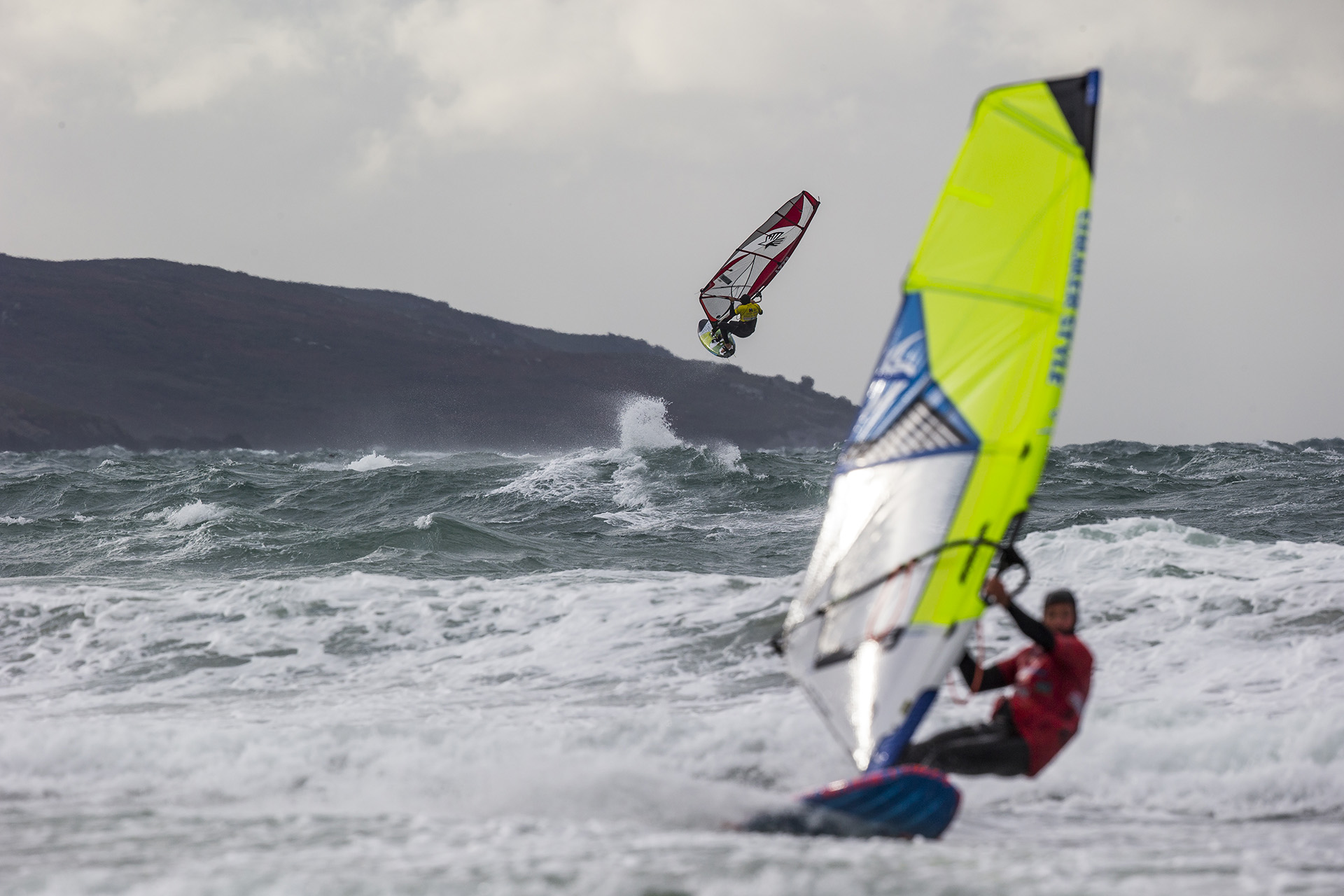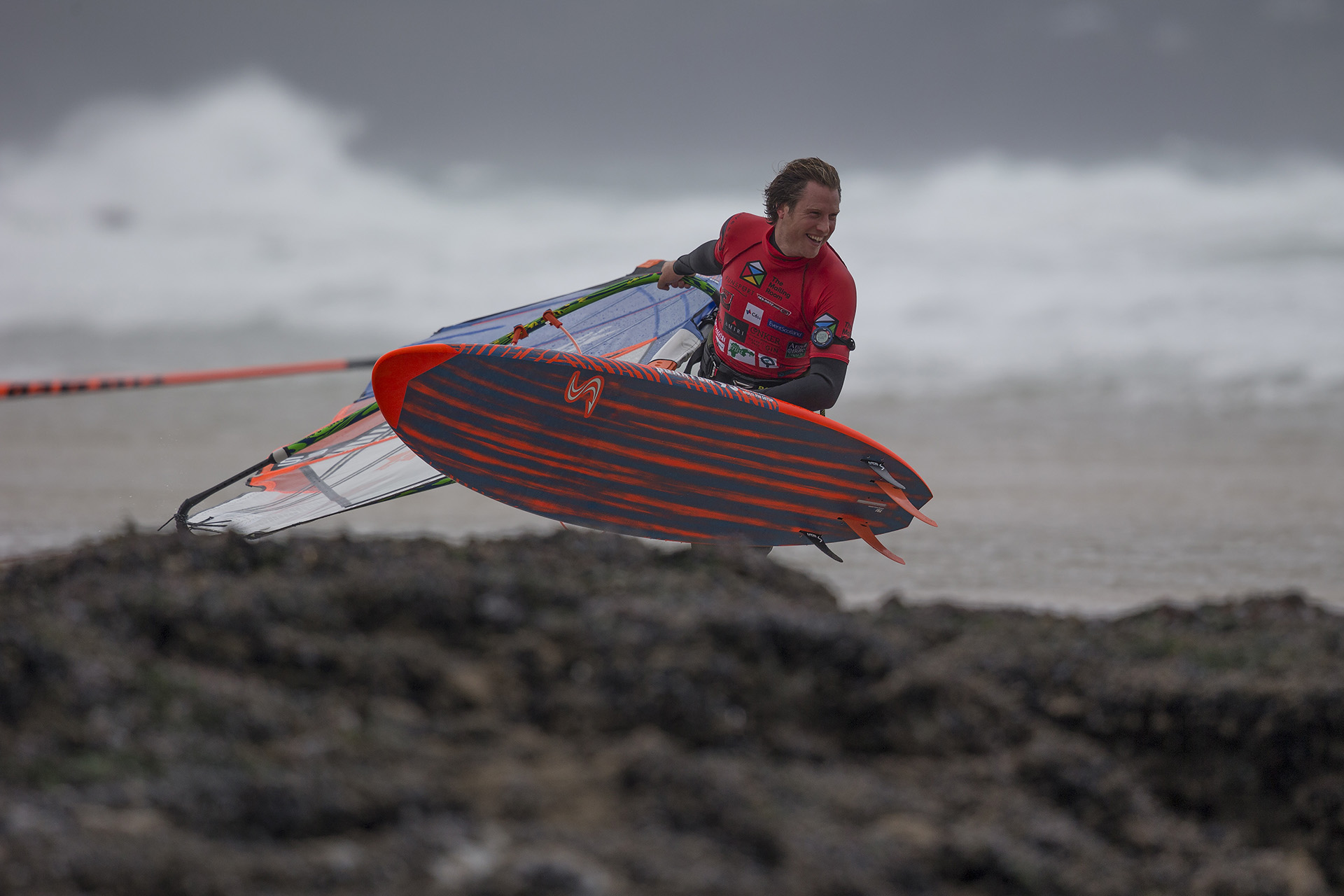 Day 2 of the 2018 Cornwall Wave Classic continued with action for all fleets in chunky starboard tack Gwithian, despite heavy hail showers the organisers ploughed through the eliminations with now Cornwall based Andy King showing the benefit of local knowledge and starboard jumping prowess to take down Ben Proffitt and Adam Lewis before Phil Horrocks stopped his charge. Phil and Timo Mullen then battled it out in a close heat with Phil taking the win before challenging James Cox for a super final which saw James come out on top, his first BWA win! In the women Sara Kellett beat Sarah Hilder while Jack Petit, Jim Brookes Dowsett and Joe Trinder took the single elimination wins in the Amateur, Masters and Junior respectively. With more wind forecast – stay tuned for further!