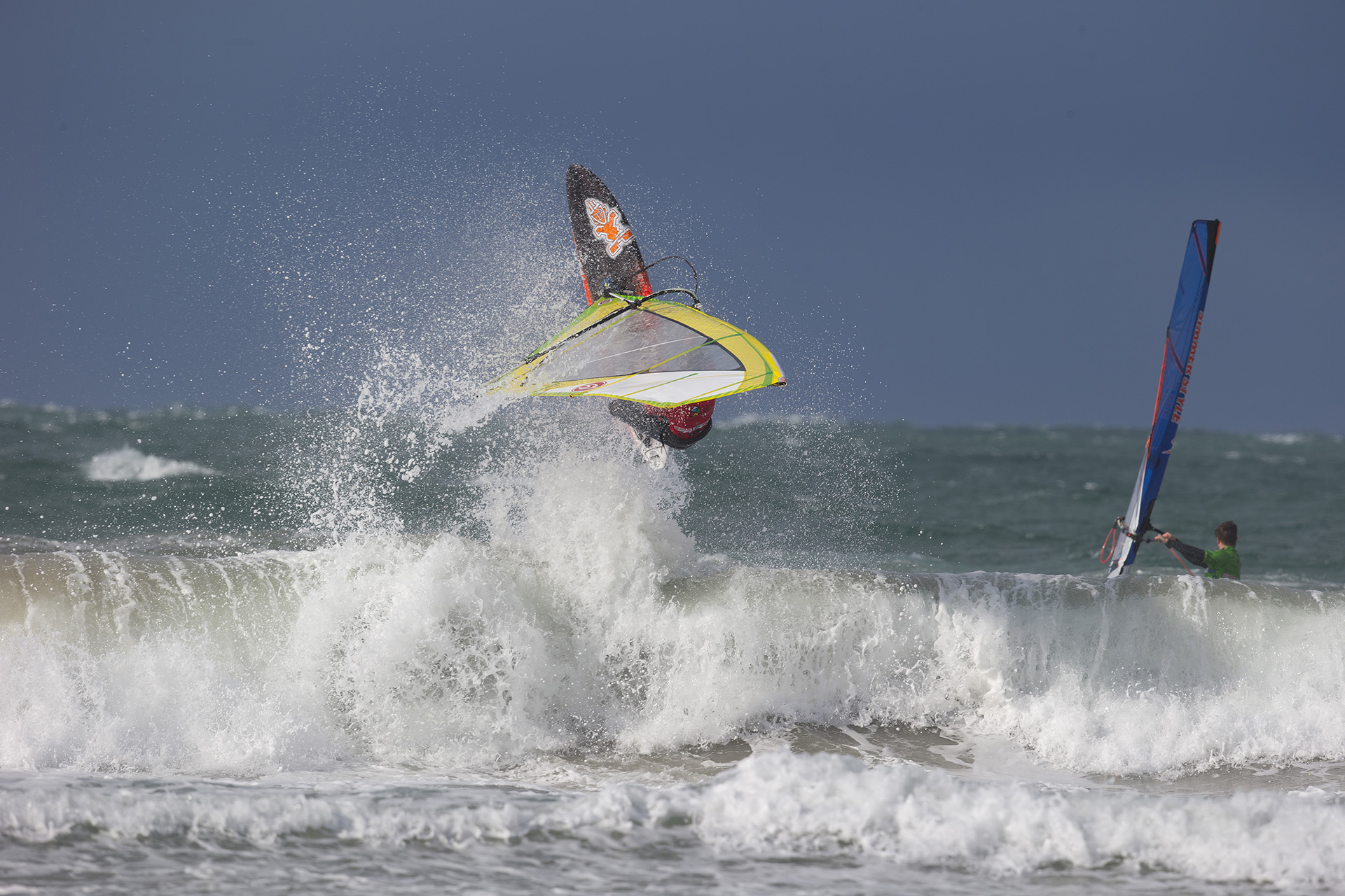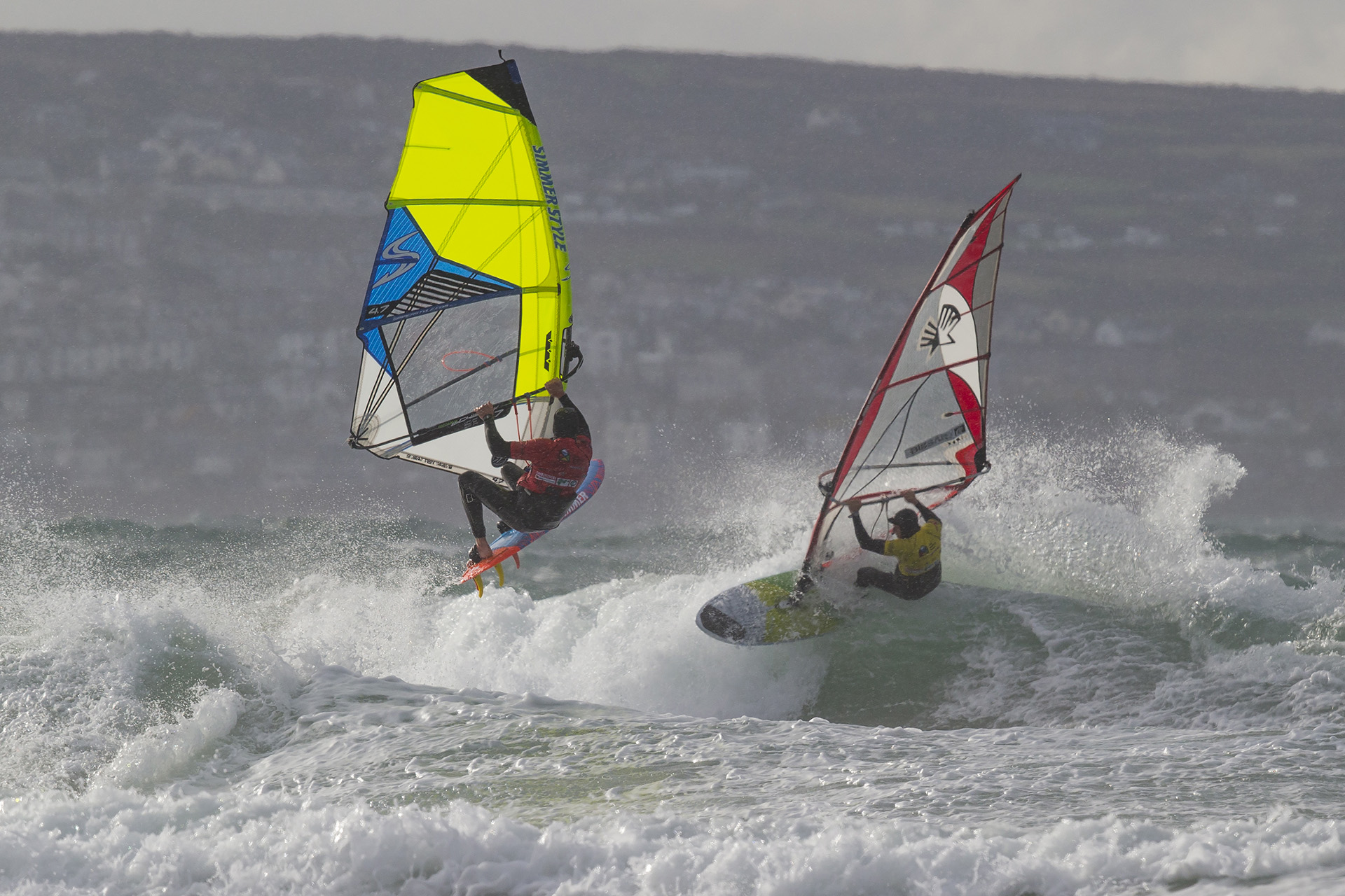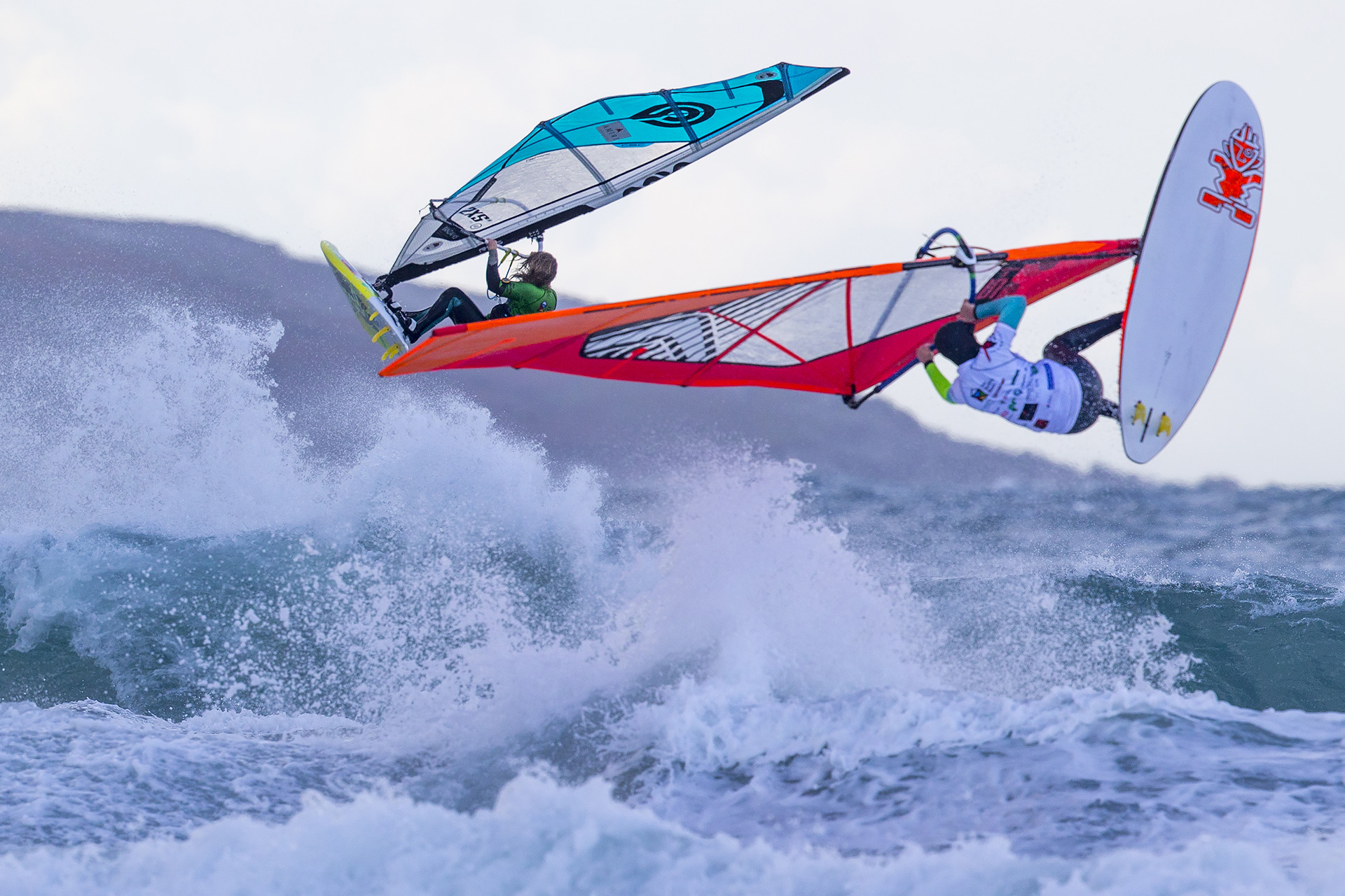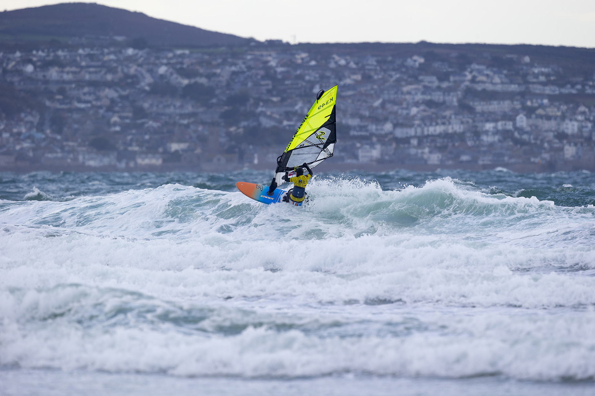 Day 2 of the 2018 Cornwall Wave Classic continued with action for all fleets in chunky starboard tack Gwithian, despite heavy hail showers the organisers ploughed through the eliminations with now Cornwall based Andy King showing the benefit of local knowledge and starboard jumping prowess to take down Ben Proffitt and Adam Lewis before Phil Horrocks stopped his charge. Phil and Timo Mullen then battled it out in a close heat with Phil taking the win before challenging James Cox for a super final which saw James come out on top, his first BWA win! In the women Sara Kellett beat Sarah Hilder while Jack Petit, Jim Brookes Dowsett and Joe Trinder took the single elimination wins in the Amateur, Masters and Junior respectively. With more wind forecast – stay tuned for further!