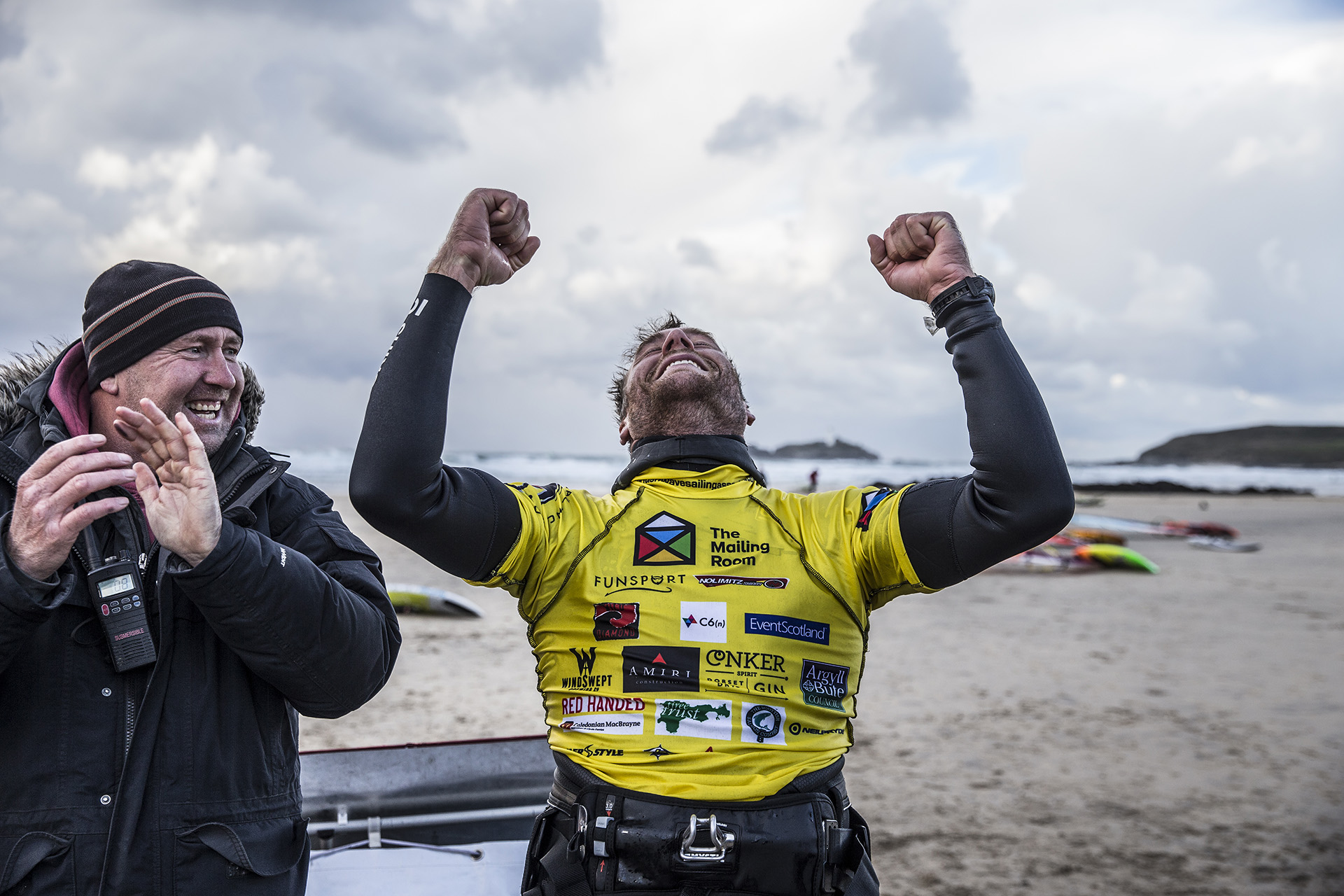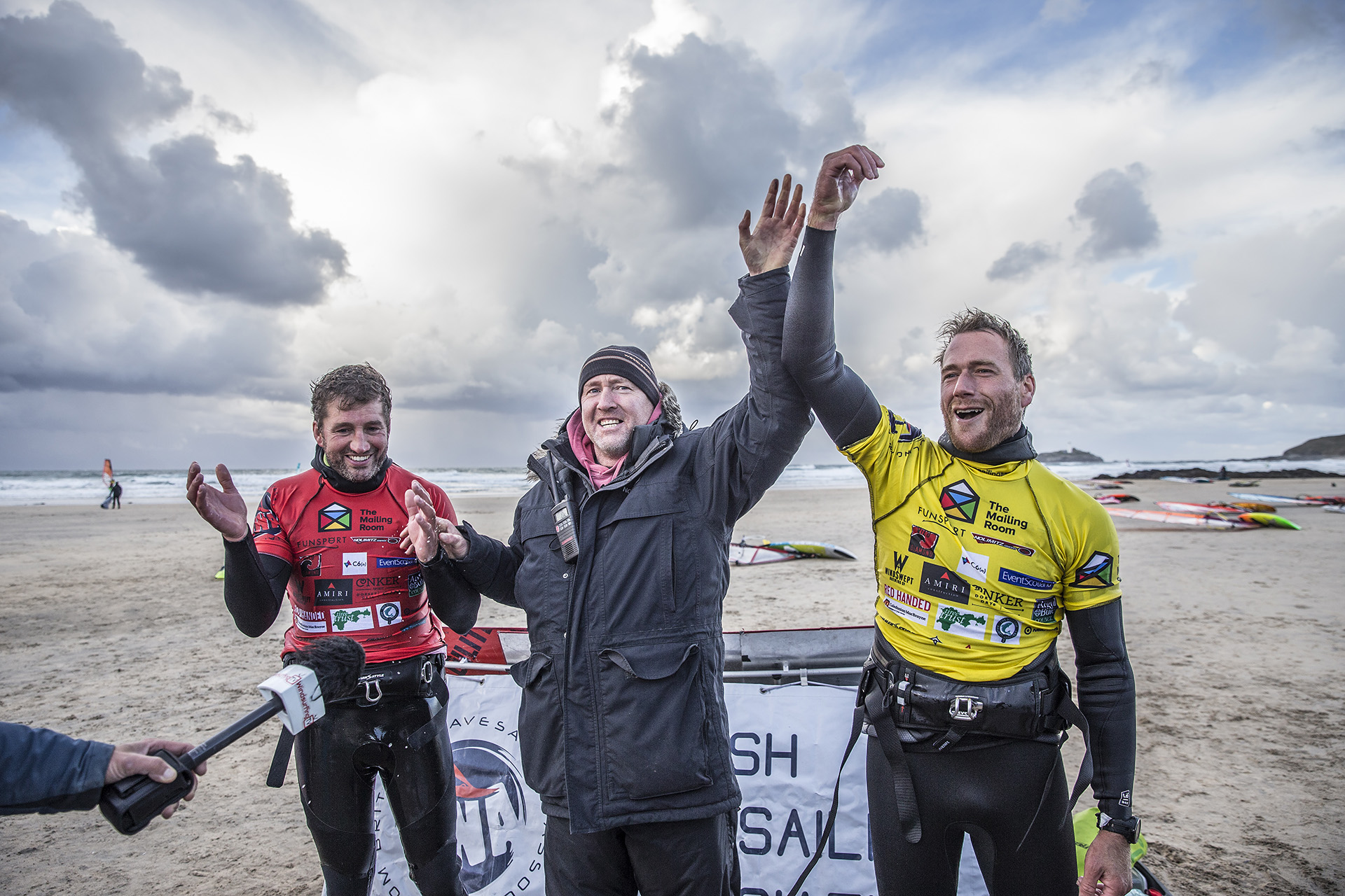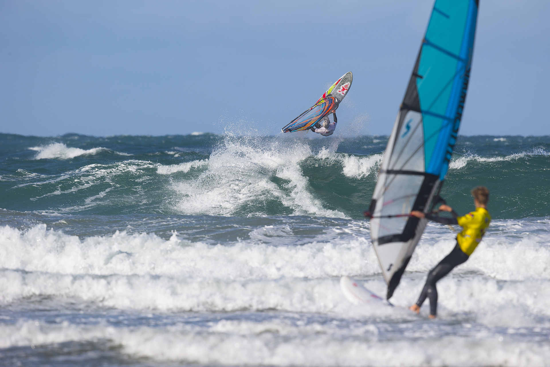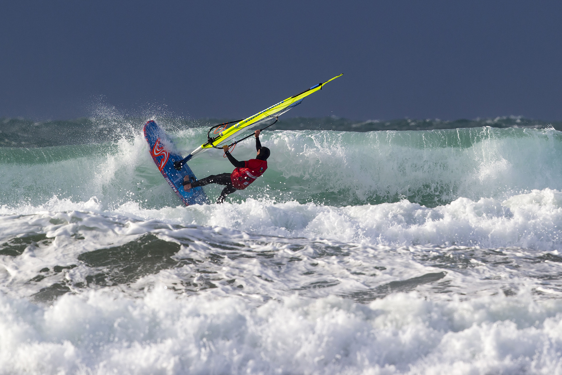Day 2 of the 2018 Cornwall Wave Classic continued with action for all fleets in chunky starboard tack Gwithian, despite heavy hail showers the organisers ploughed through the eliminations with now Cornwall based Andy King showing the benefit of local knowledge and starboard jumping prowess to take down Ben Proffitt and Adam Lewis before Phil Horrocks stopped his charge. Phil and Timo Mullen then battled it out in a close heat with Phil taking the win before challenging James Cox for a super final which saw James come out on top, his first BWA win! In the women Sara Kellett beat Sarah Hilder while Jack Petit, Jim Brookes Dowsett and Joe Trinder took the single elimination wins in the Amateur, Masters and Junior respectively. With more wind forecast – stay tuned for further!