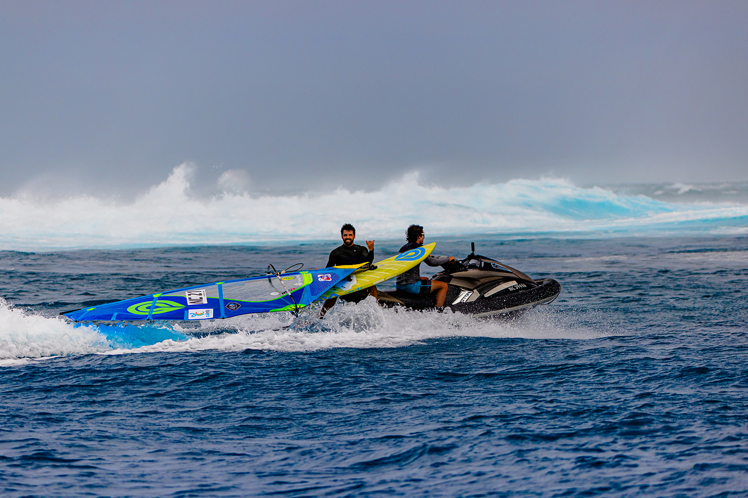 We had a pretty solid crew this day; Titouan Galea, Clement Colmas and Arthur Guillebert, who are all experienced sailing this reef break. We also had a jet ski which we had access to in the scenario that a rescue was needed, which helped to make things a bit safer. On camera was Gill Chabaud, who managed to score some amazing images, so that we can look back on this day with fond memories. This session was pretty serious and safety is always paramount with waves of consequence such as Tenia.