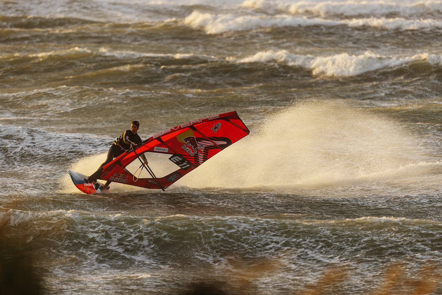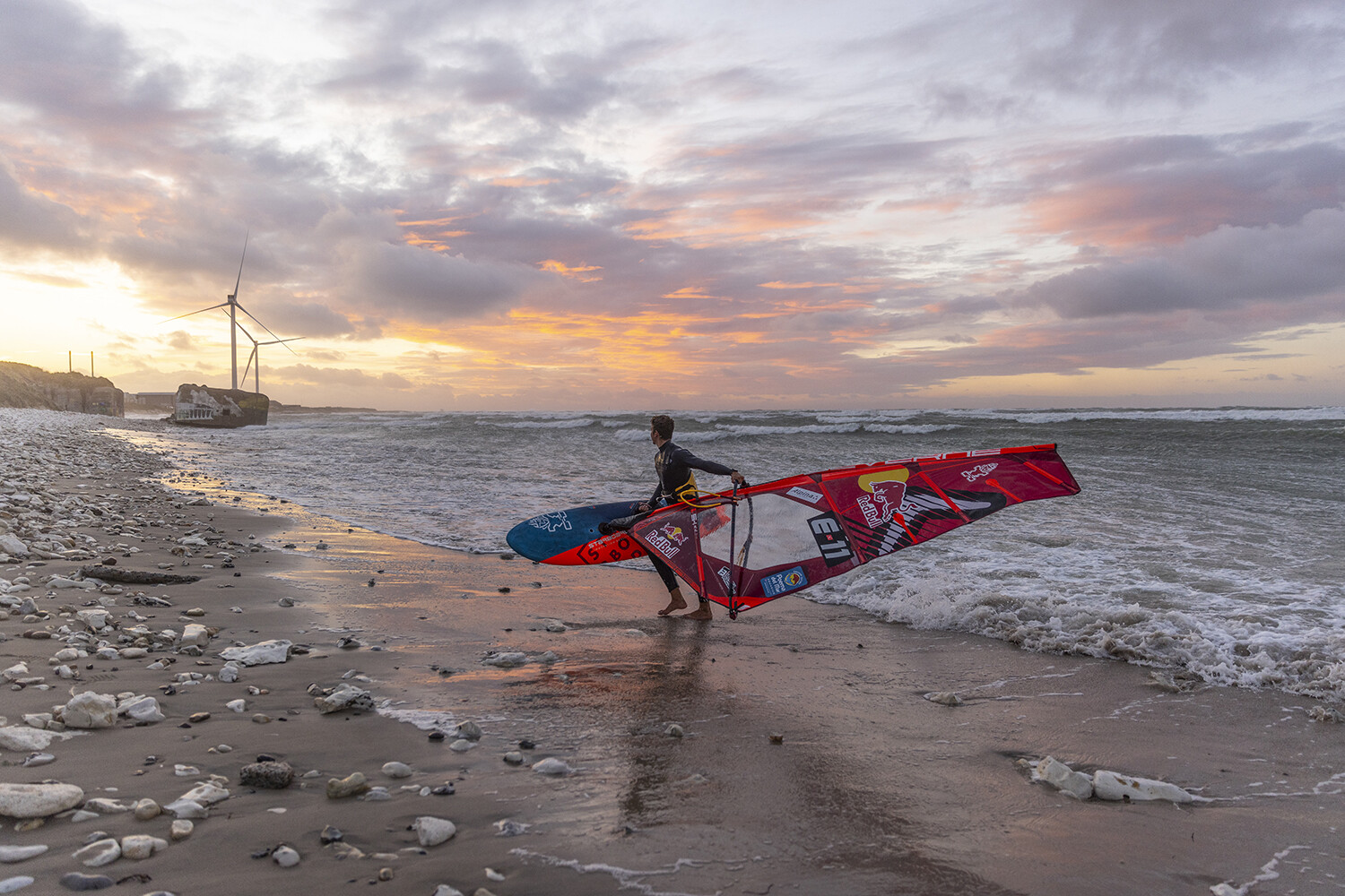 “That was one of my wildest sessions ever! There were probably gusts of 50 knots with mast high ramps. I think I did the biggest jumps of my life. My watch was saying I went over 10 metres and some jumps were 12! The best jumping session I have ever had. The smallest sail I had here in Denmark was a 3.3m, which was fine. Marino is one of my best mates, we are always sailing together. So to be out there sharing that mental session was just like a dream. We were screaming at each other on the water, it was just so crazy.”