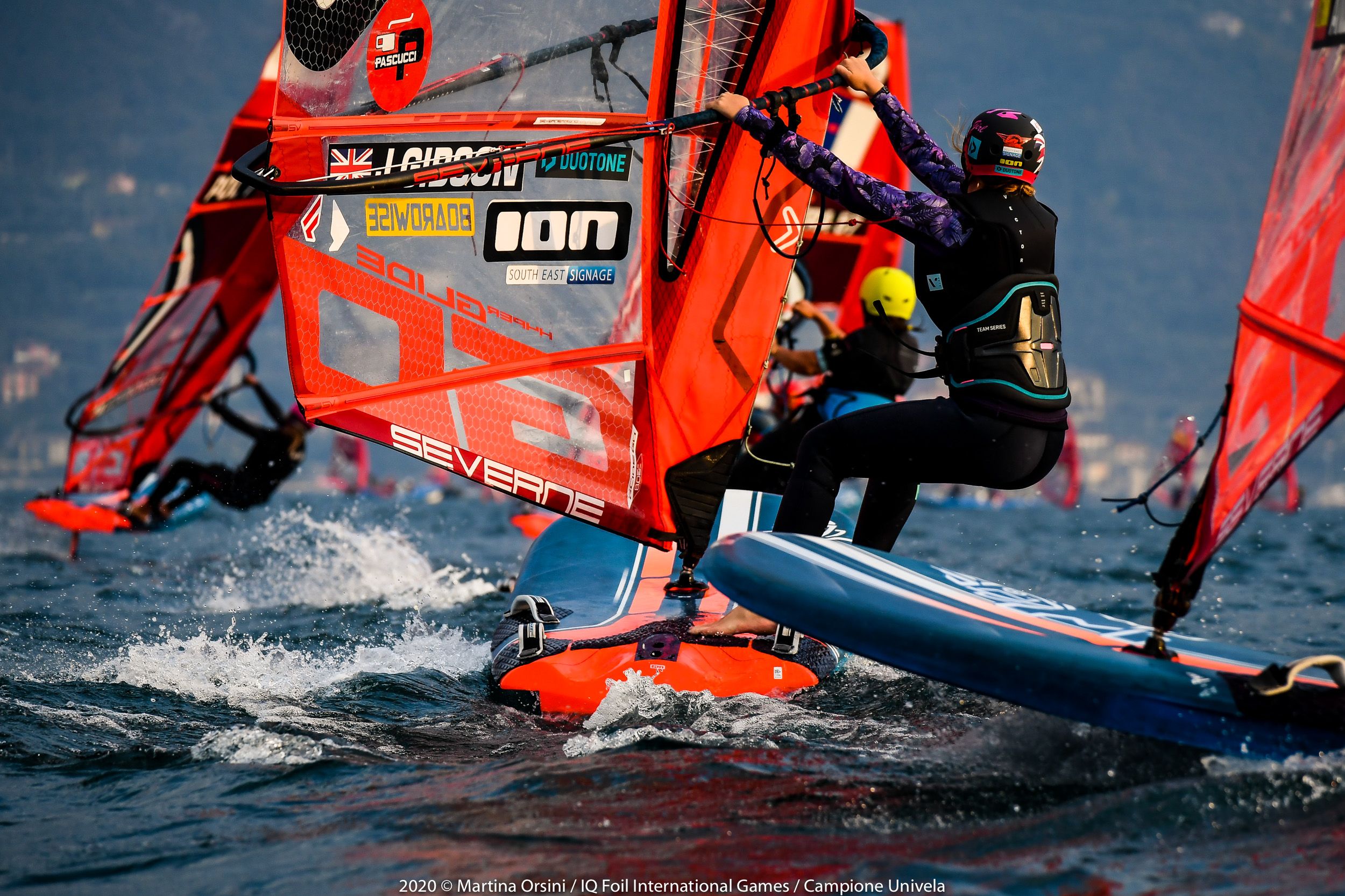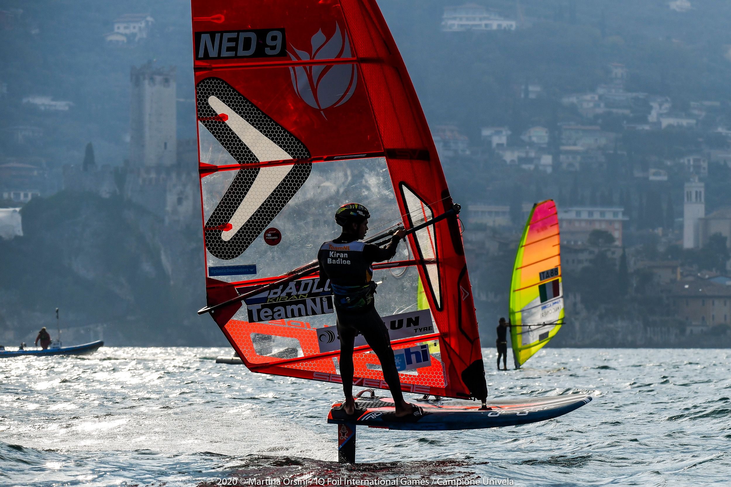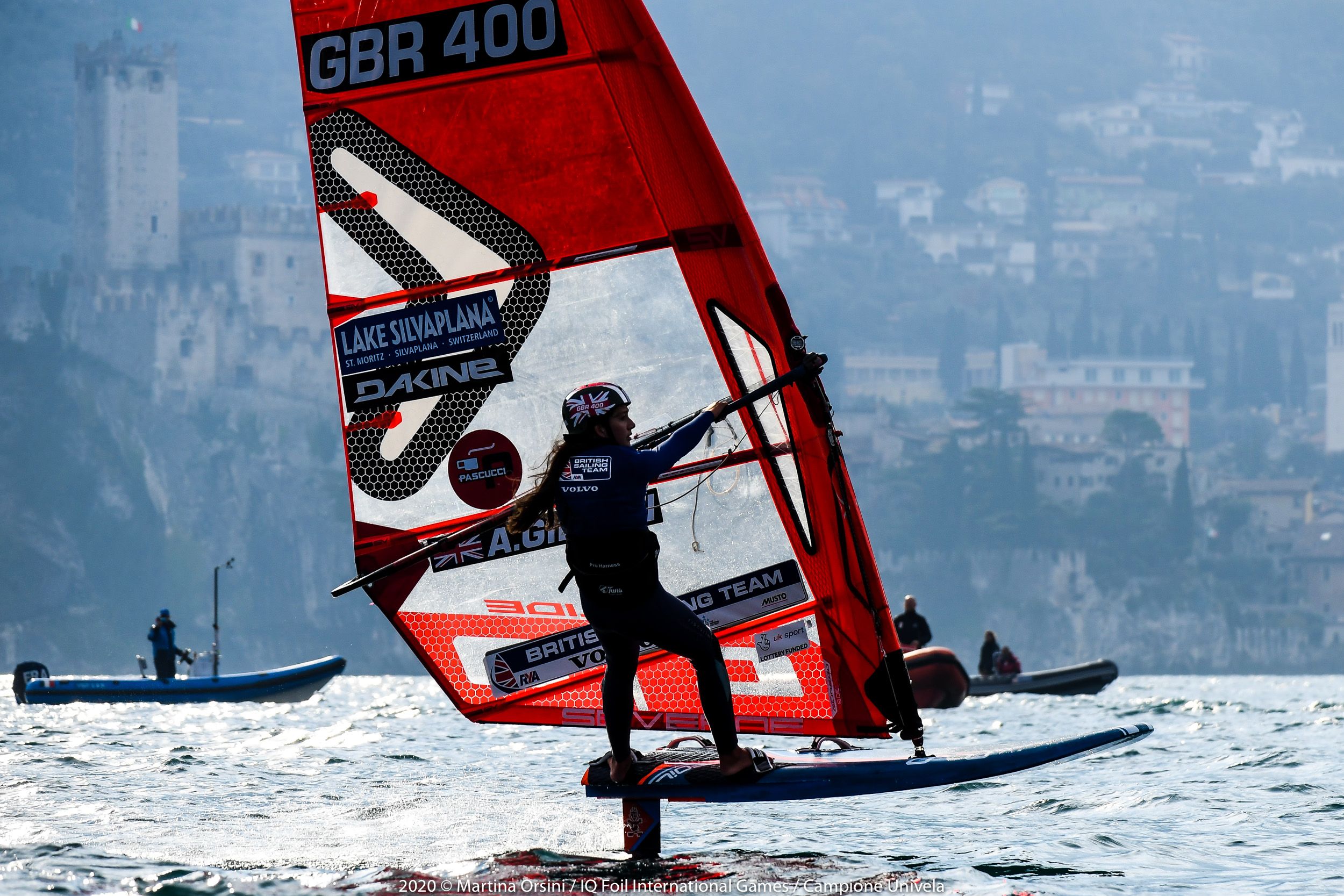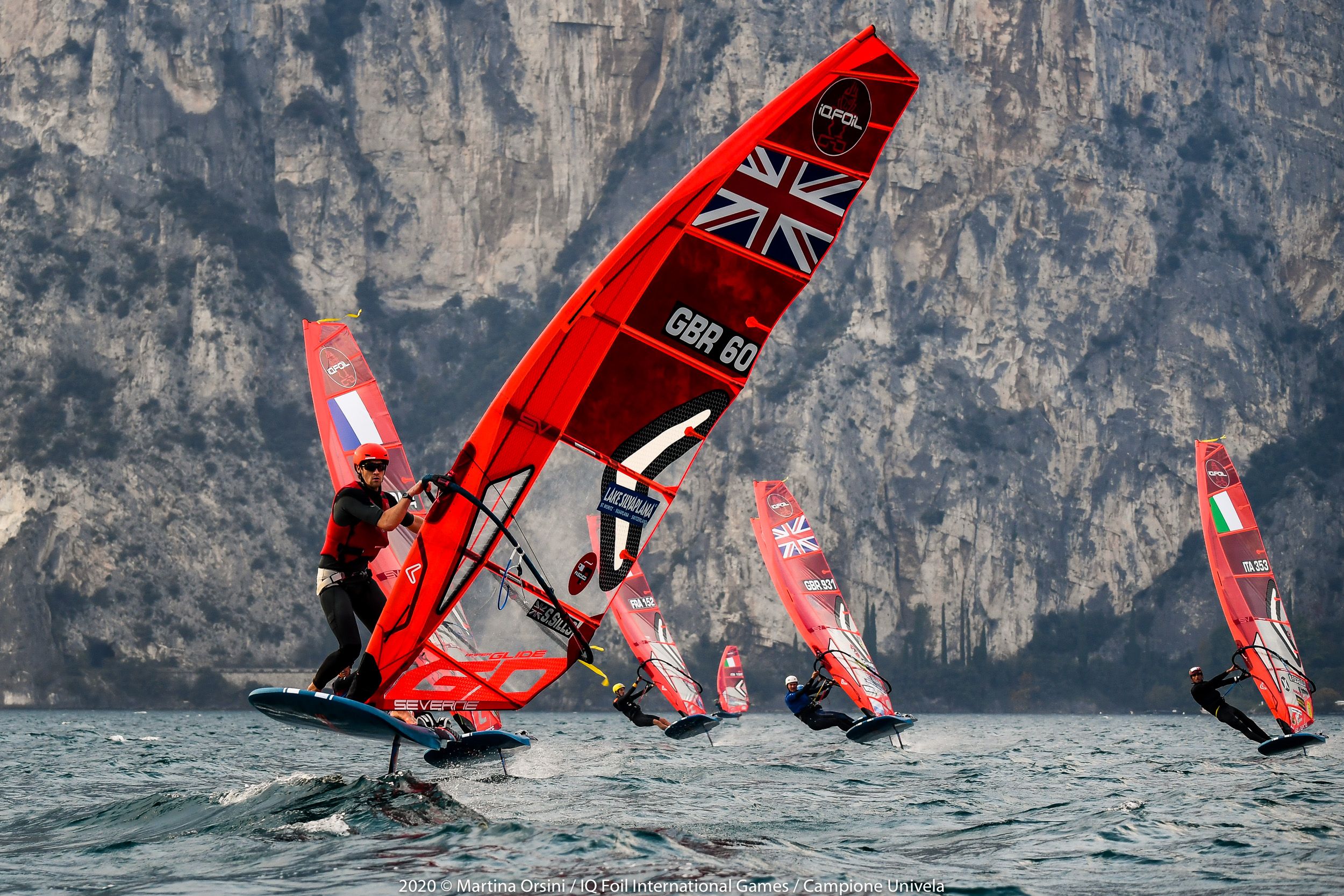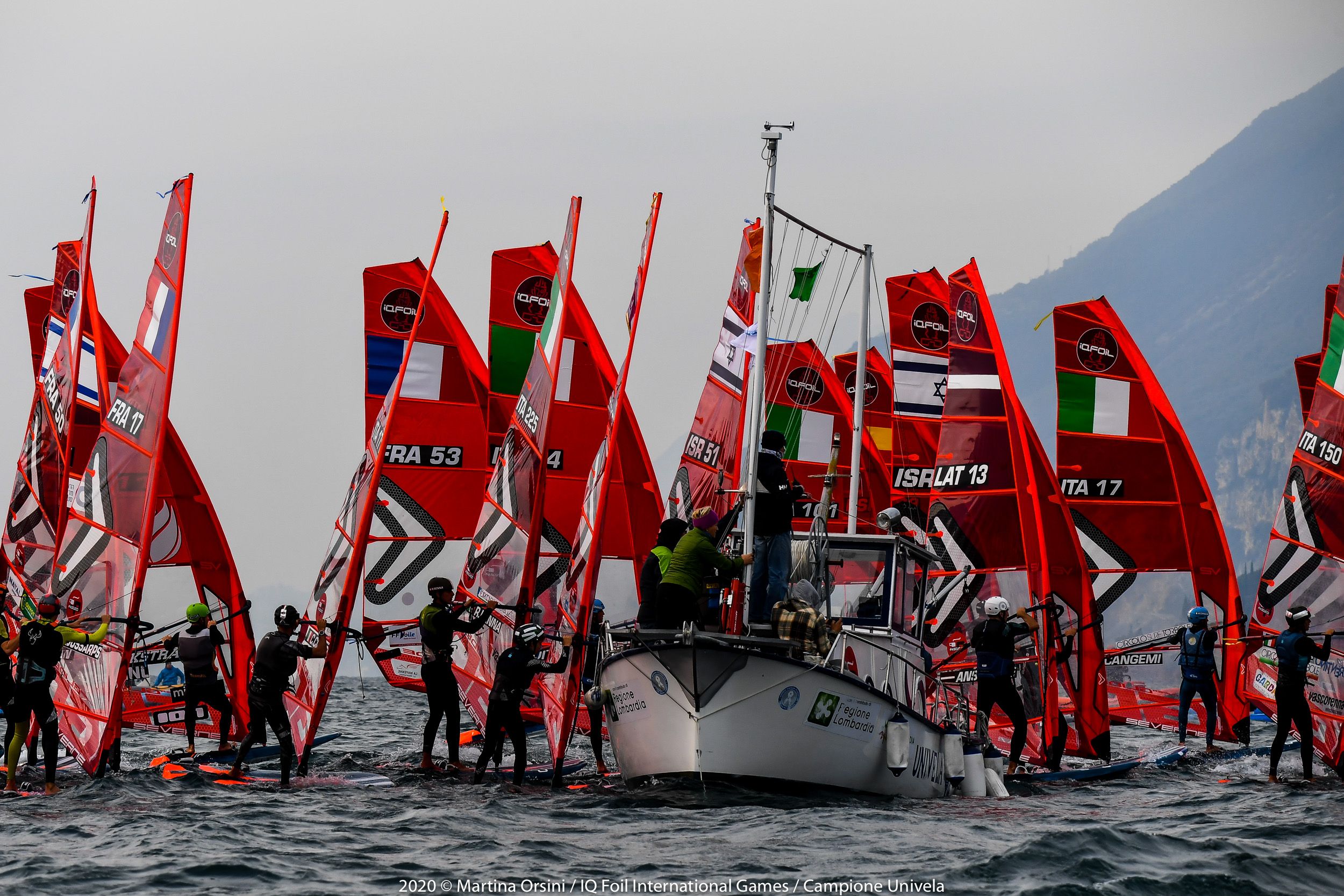 Day two wraps up in Campione Univela, while we are already looking at tomorrow’s conditions, that look similar to today’s. Some windward-leeward races are planned in the morning and a couple of slalom races in the afternoon, were confirmed in the evening skippers’ briefing, held online to avoid assemblies in these critical times we are facing. This is just one of the many strategies put in place by Univela Sailing, and the co–organising club Società Canottieri Garda Salò, in order to keep the international event on the calendar and run it safely both ashore and on the water.