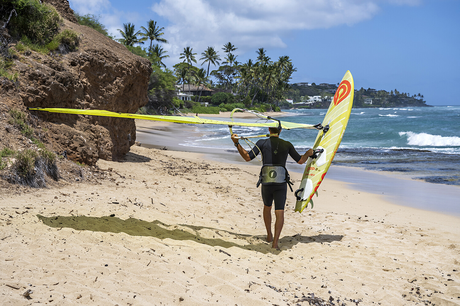 For Diamond Head I set up my gear pretty much the same as Ho’okipa. The main thing that I learned is that in Diamond Head the wind is a lot lighter than in Maui, so even if Windguru is showing ‘red’ for the wind speed, I can pretty much always get away with a 4.7 as my smallest size. So packing is easy, I can take a 4.7 and a 5.0 with a 89-litre board and that will cover me for 90% of days over there.