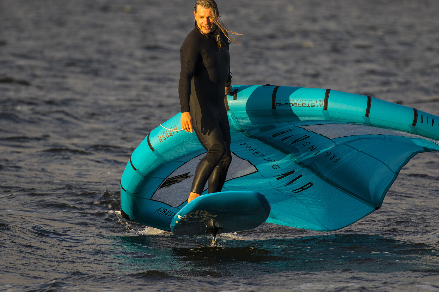 When I ‘wing’ in surf, one of the most enjoyable things to do is park the wing in neutral and just glide on the waves. It’s an addictive feeling, but why only in swell I thought? Surely with a bigger front foil on my local lake I could still glide with the wing in neutral by using a bit more leg power to pump and keep the ride going down little bits of chop. And I did, and it felt even better than in the sea because I was doing something different. The only thing stopping me was my own blinkered thoughts. Convention is good for convention, but for moving sideways in water, whatever your board craft, a little bit of alternative thinking can bring you a long way.