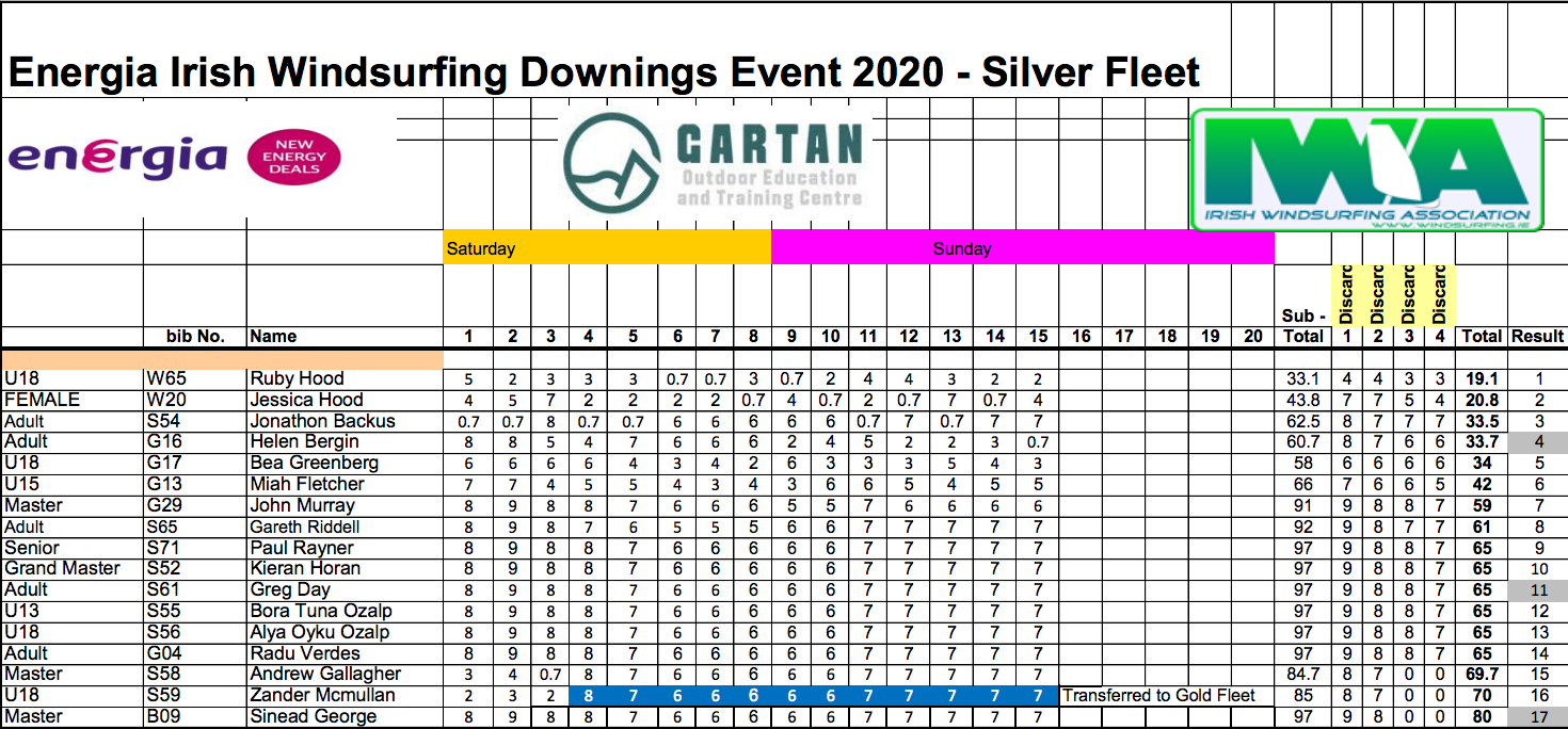 The main event was the National youth championship and below are the results of very competitive racing. Well done to all the Irish Windsurfing Champions for 2021.”