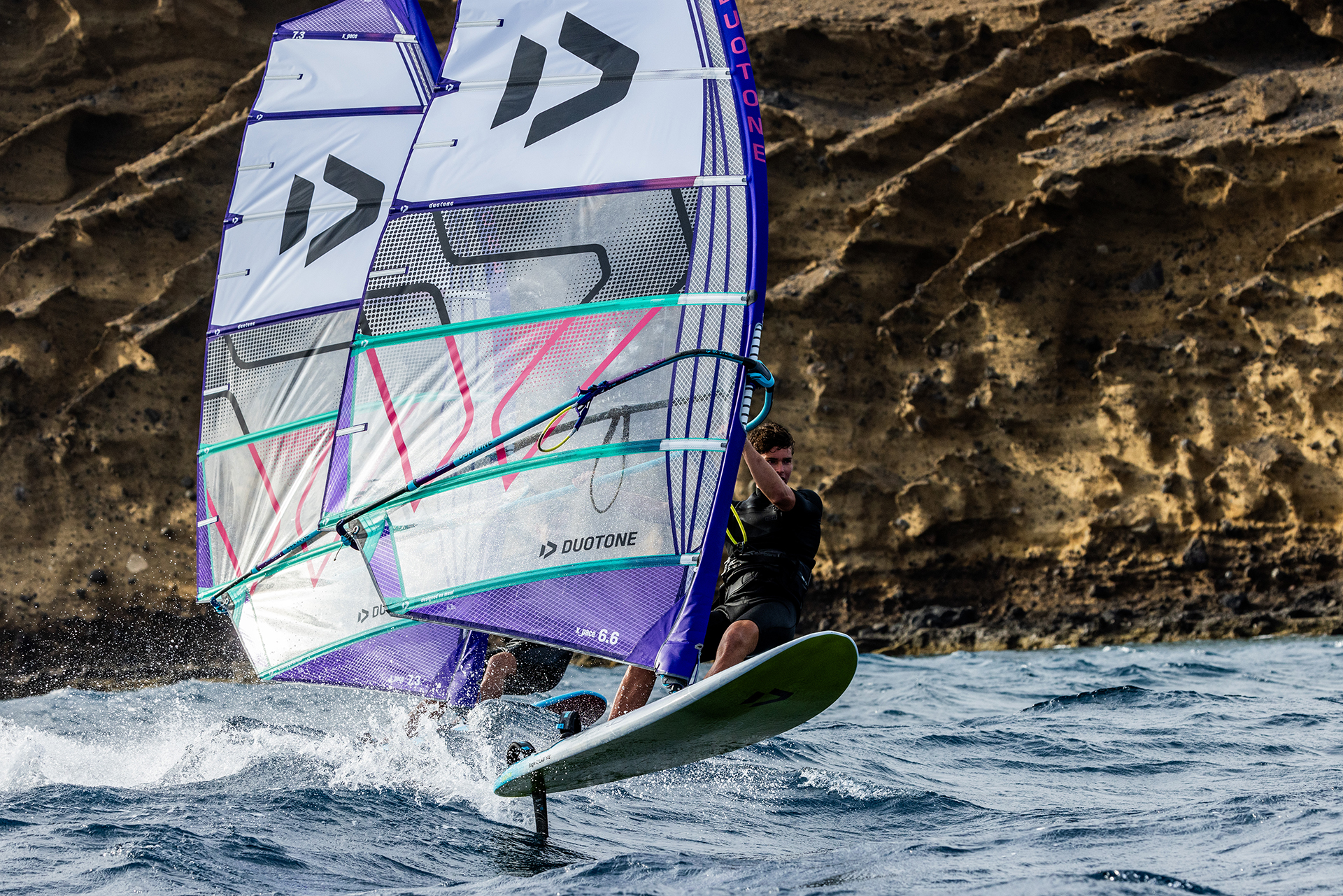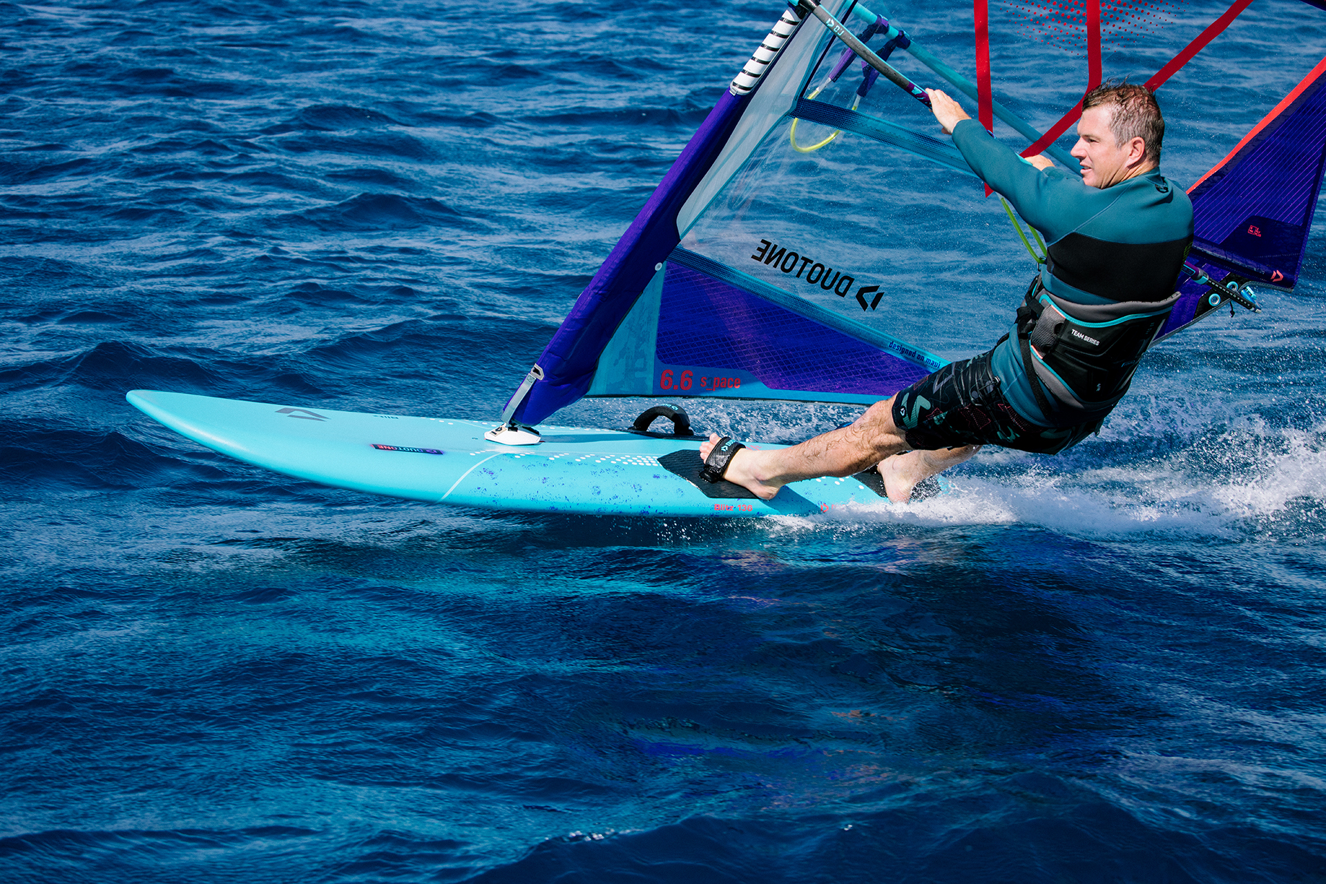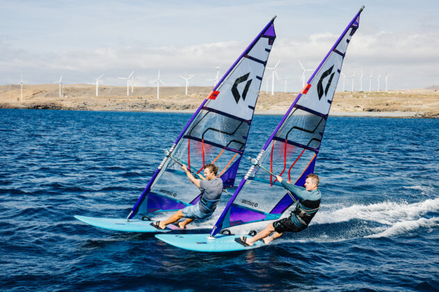 The forward pull pushes you into a committed stance, allowing to let your board fly on the fin. Another decisive advantage is that the pre-shaping in the sail makes it work on both SDM and RDM masts.