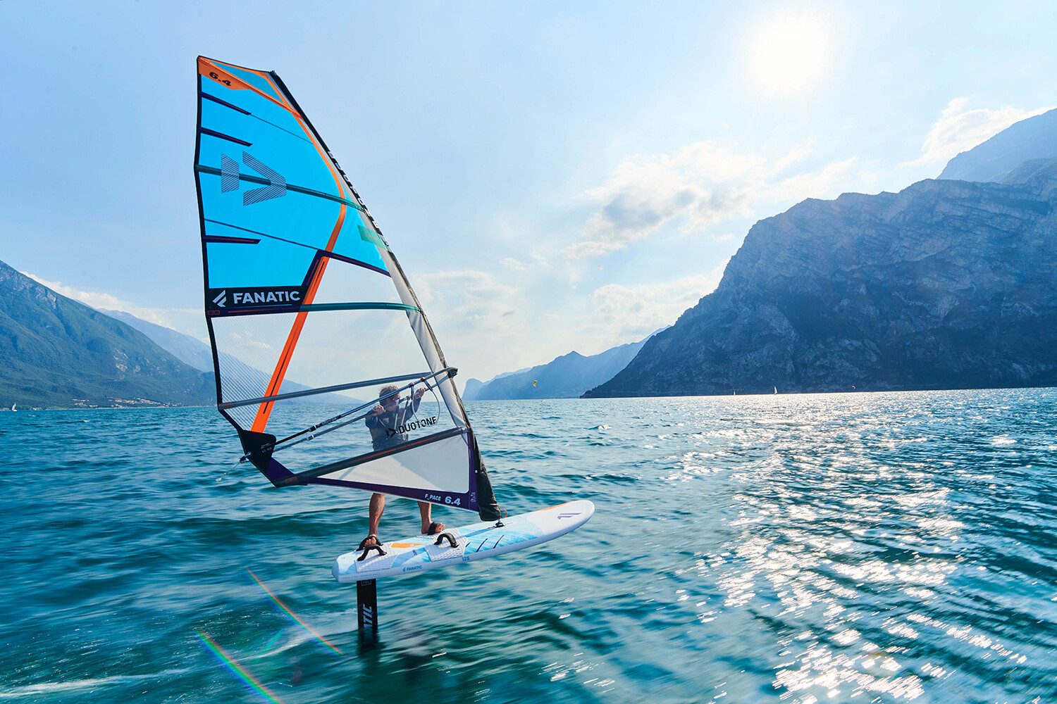 Foilsailing is more popular than ever and is developing rapidly. Meanwhile, in addition to classic foilriding, foilstyling as a playful variation with a clear leaning towards freestyle is causing a lot of excitement and unlimited possibilities. Both “playgrounds” have specific requirements that regular fin sails cannot meet. This is exactly why the completely redesigned F_PACE range consists of two differently designed models, which up to size 5.8 are clearly described as F_PACE STYLE and 6.4 and 7.4 come as F_PACE RIDE. But both designs have one thing in common: they are spiked with innumerable, foil-specific design features that have a decisive influence on performance and result in extraordinary characteristics in their respective spectrum.Only 4 (STYLE) or 4 3/4 (RIDE) battens, a super short boom, a reduced luff curve and the wide Dacron luff panel combine to produce a favourably soft and very light foil sail. The high aspect outline with reduced top surface corresponds perfectly with the low water resistance of the hydrofoil and the hardly existing lateral forces. With less movement in the top, the rig remains stable over the board, for maximum control yet very reactive.