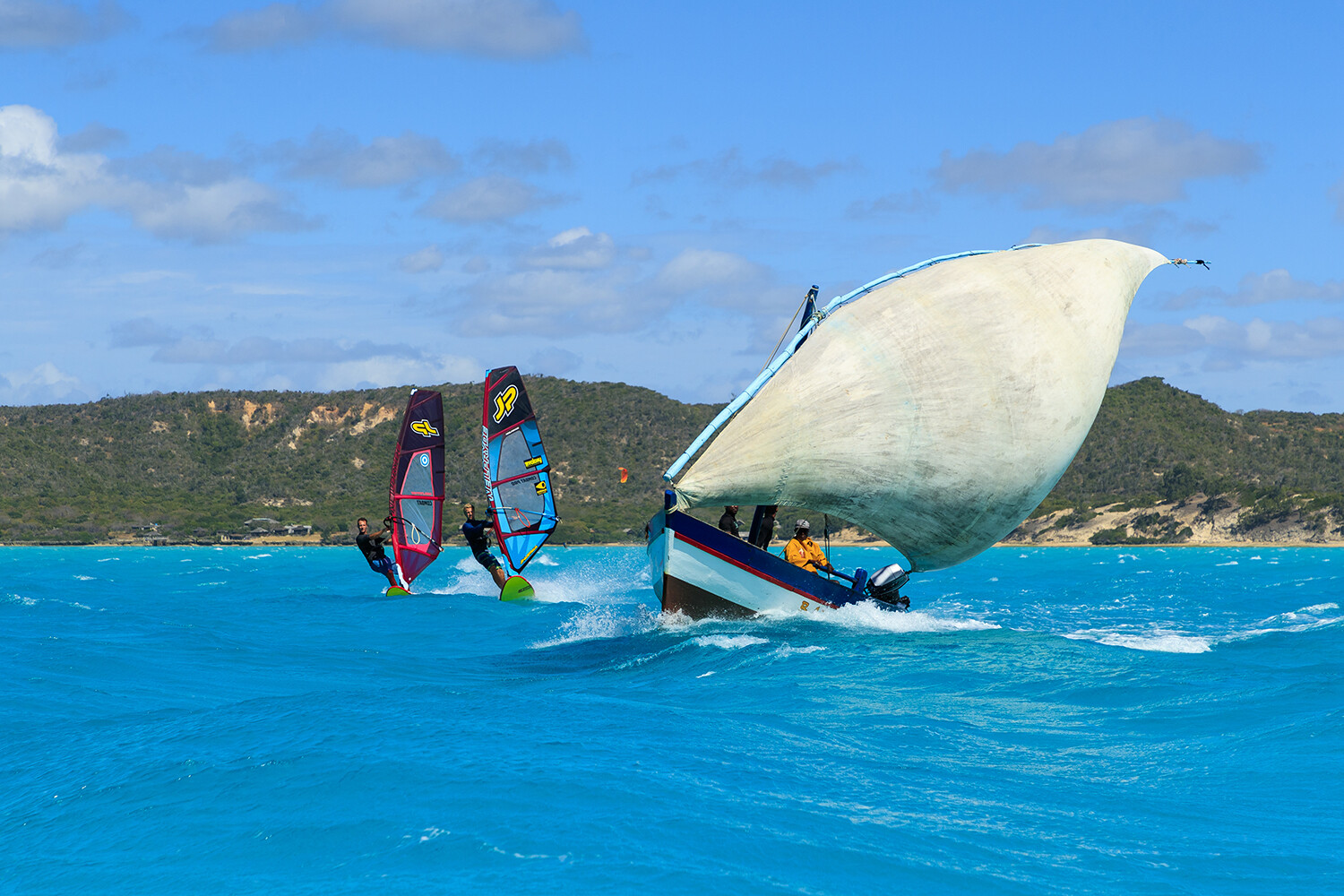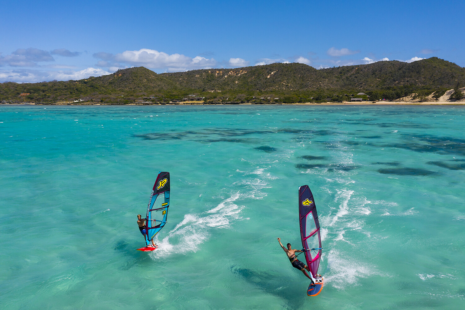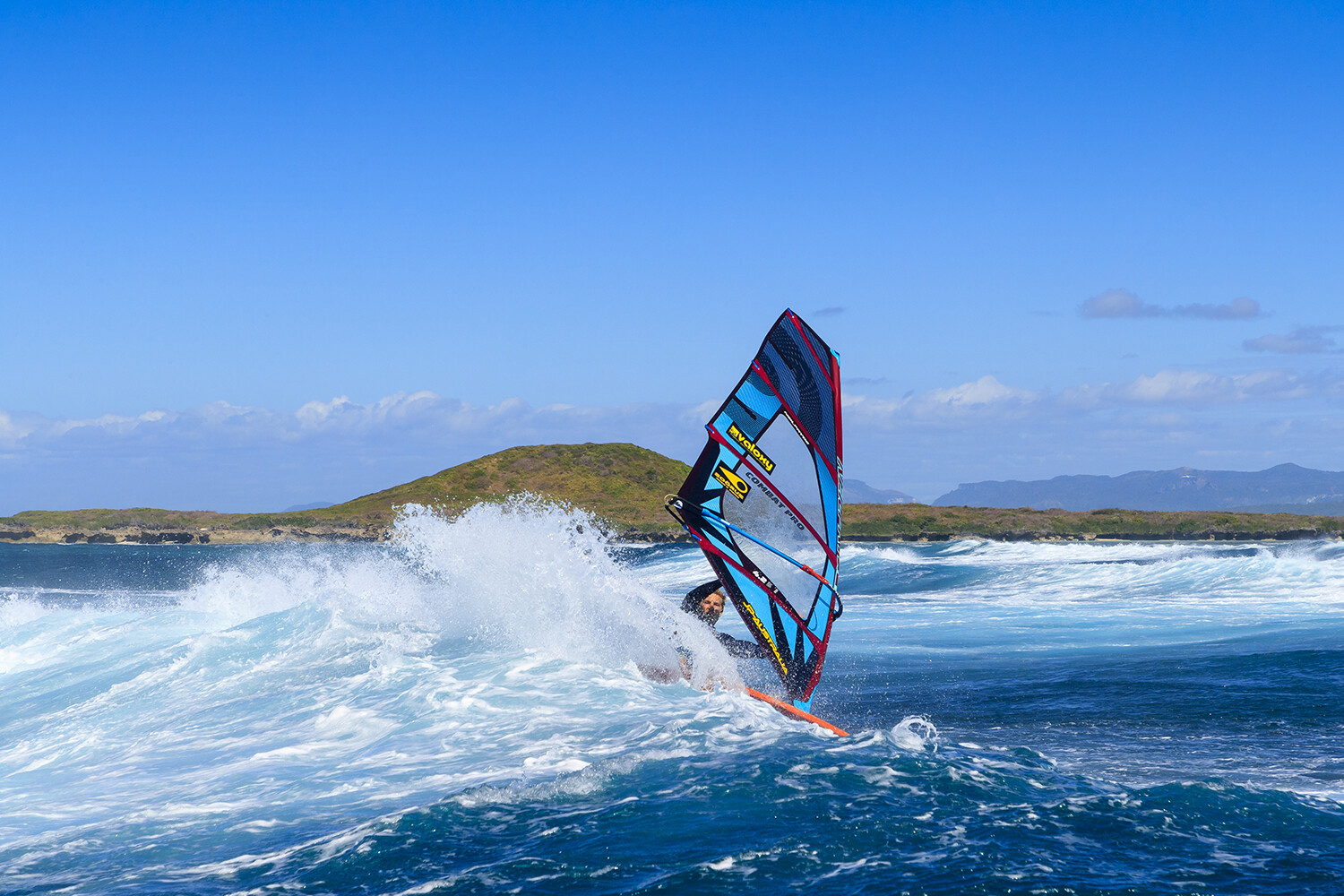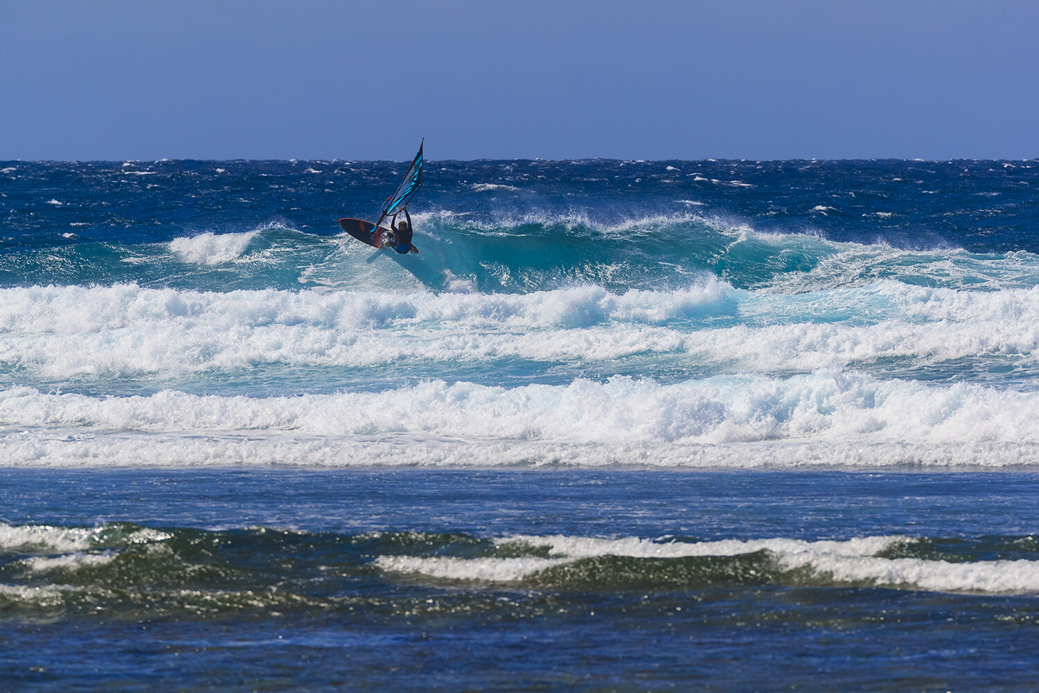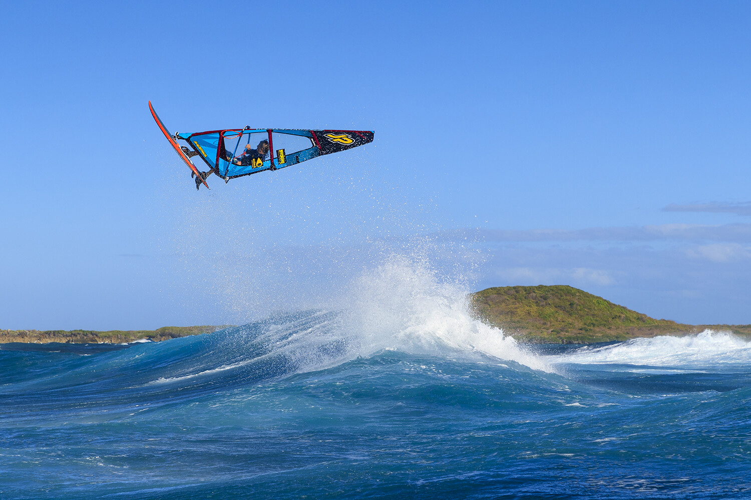 Trade winds arrive in April and blow non-stop until the end of November between twenty and thirty-five knots every day; most used sail is 4.7/4.2. The sailing is starboard tack, easy and accessible for all, whether it’s freeride or wave riding.