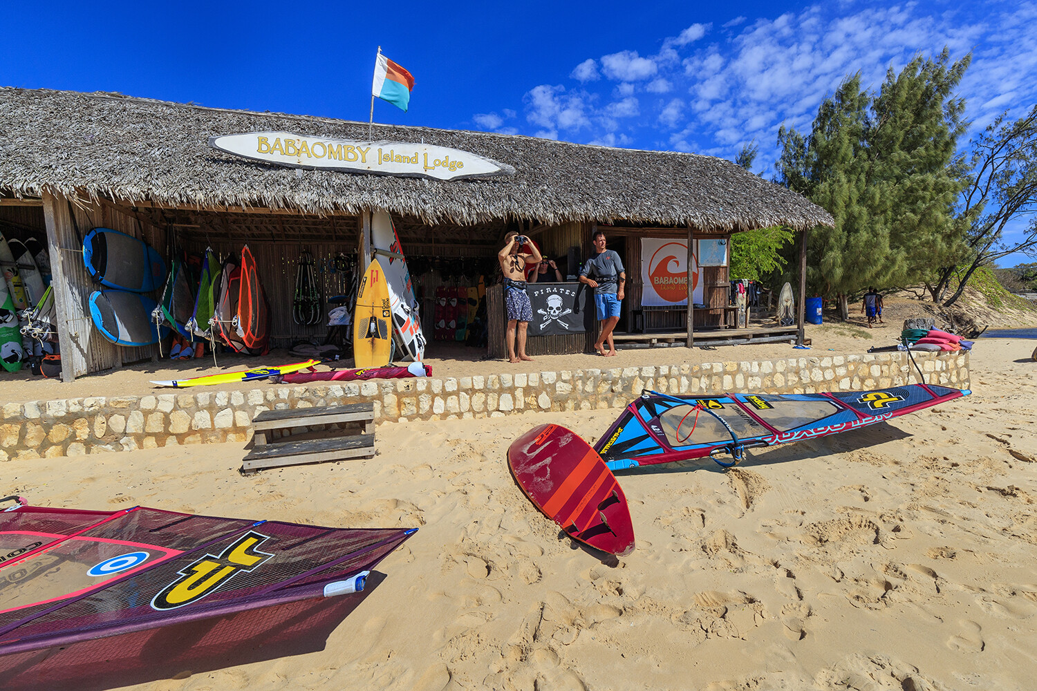 Nicolas has managed to build simply, elegantly and intelligently, all while respecting nature…it’s outstanding. We take a quick tour of the lodge and start eating. In Babaomby lodge there is only one very long table where everyone eats together. This concept of friendliness and conviviality, sadly often forgotten, allows us to meet interesting and friendly people. The majority are kitesurfers; after a few days of watching us sail, one of them envied us and joined us to windsurf “like in the old days”. He admitted at the end of the week that nothing will ever replace windsurfing, it was a small victory!