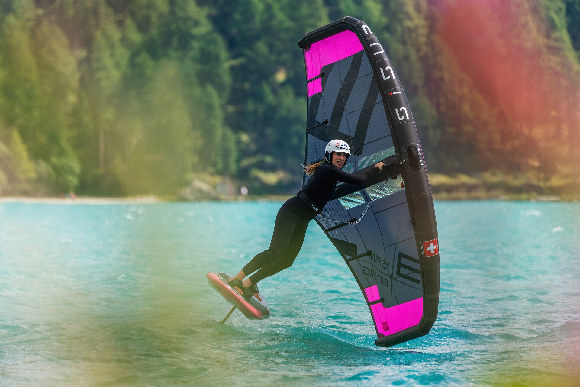 «The TOP SPIN feels light and balanced in my hand no matter whether I cruise over the lake or fly through manoeuvers. The ergonomic boom creates a comfortable and direct connection to the wing. On top the fresh colours bright up my sessions.»