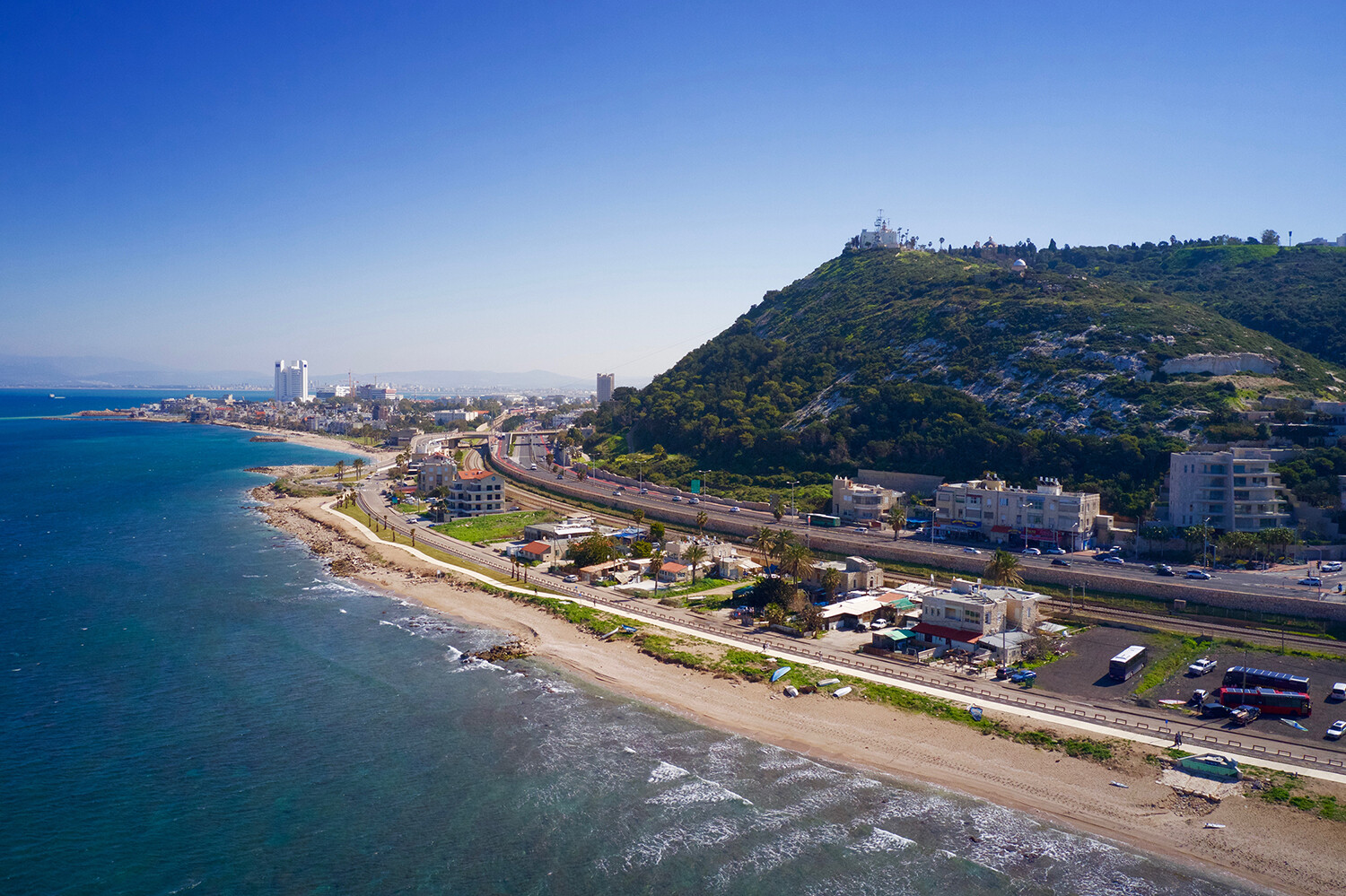 Nahariya / Betzet beach; Caesarea, Sdot Yam; Tel Aviv – Hilton beach; Haifa; Bat Yam – Laguna beach club; all offer freeride, slalom, freestyle, foil and sometimes waves. Shorty wetsuit at worst, but normally only shorts and lycra needed. Thermic north winds usually from 2 p.m. till dark. Betzet and Caesarea can come up to 25 knots, rest of the coast 15 to 20 knots average.