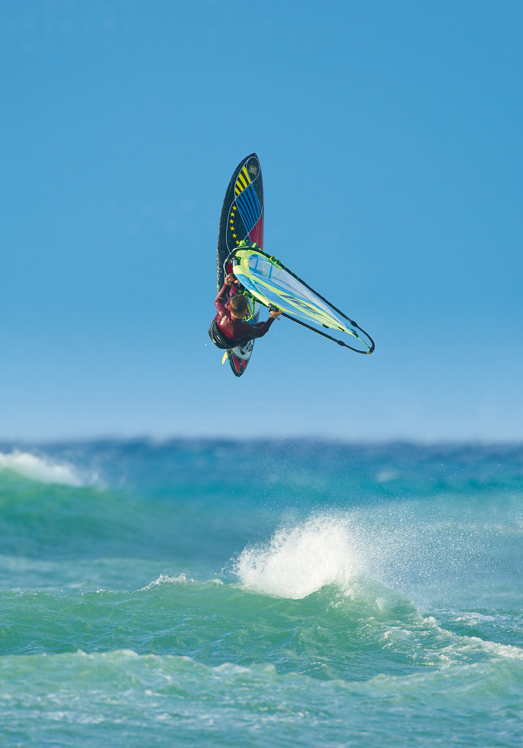 After the tour we headed back to ‘The Church’ without further delay. The waves were already 2m high with 25 to 30 knots of wind waiting for us. Arnon sailed a 5.0m, Babou a 4.6m and Esteban a tiny 3.3m. The boys had an amazing session with jumping and riding all day, with front, back and push loops and wave smacks right until sunset. On our last day the wind was a solid 35 knots with mast high waves. So we drove down the coast to our next spot. We sailed out from behind the ‘Sea Research Centre’ and Esteban aged 14 had butterflies in his stomach when he looked at the daunting conditions. The sea was relentless with well formed waves and during this session we had many wipeouts with the guys swimming a lot for their boards. Despite the rough conditions the spot was relatively safe and the reef not too sharp. Looking for a change, the crew decided to finish the day at ‘The Church’ as they all wanted to concentrate on jumping and a few last rotations before heading home.