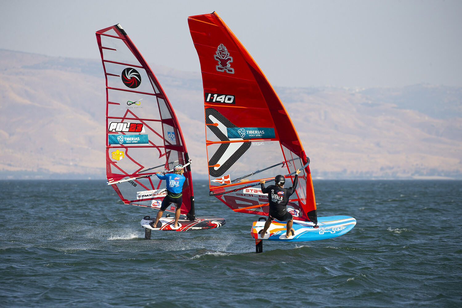 The most important thing for me is to be stable. If you are not stable and comfortable you can go fast for a few seconds, but then you will crash or have to shut down. For this I think using long harness lines is one of the key things that helps. The equipment has to be stable and the sail is also important. This is why we are using different sails for foiling also. The foil sails are more stable than a regular slalom sail. In the Israel PWA event, when it was windy enough for my 6.2 sail, I just used my normal 6.2 on the foil. I used it with the same settings as in fin windsurfing. But sometimes I use the lower clew, that is the only difference, as well as the long harness lines. When you are unstable you go up and down and it is much harder to sail in the same direction, plus you will not reach your top speed. When you are stable, you accelerate and the acceleration can have almost no limit. The sail needs to stay more upright, but we don’t have the same body position as in fin windsurfing. It is more like sitting without pulling a lot on your arms. You more pull through your backside and the harness. So you are using the lower part of your body’s weight. You really feel it when you switch from foil to fin. In regular windsurfing you are killing your arms. In light winds on the foil, you really have to glide and be smooth on your equipment. In stronger winds you need to let the equipment do the work for you. But not too much, because you have a lot of power there. In light winds you almost sail with your fingertips on the boom. In high winds you need to hold it. If you feel like you are going to crash, you can try to open the sail a little or just come down. When you really go down, it gives you stability and it helps you stay on the equipment.