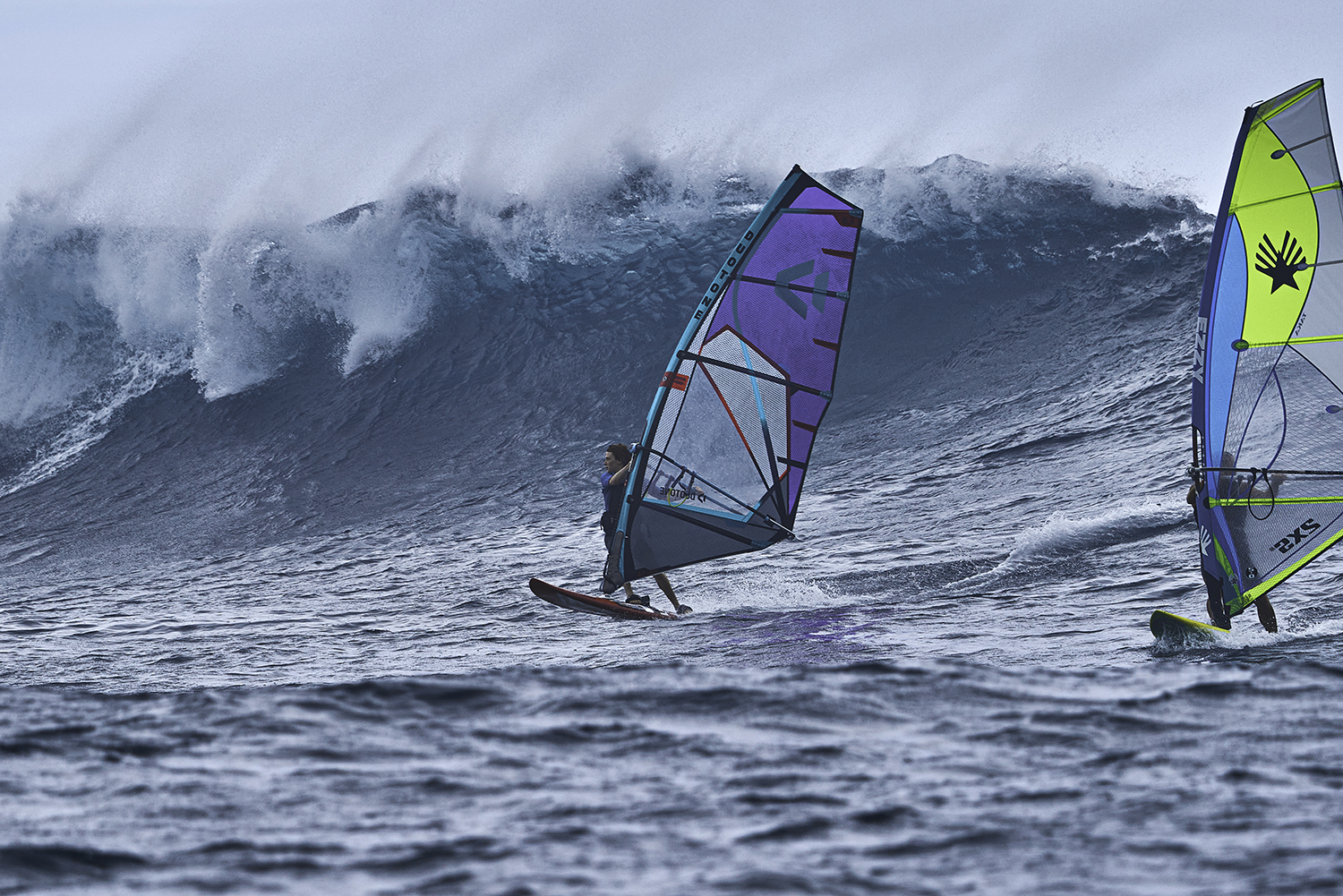 The long sail out to Manawa is intimidating; you can’t help questioning the wisdom of being such a long way from shore with a cross-offshore wind in a channel whose current takes you out to sea. Strangely though you feel safer when you arrive and join the pack of sailors – there are people around who will hopefully notice if you’re in trouble. When your turn comes and you pick up a swell with nobody else on it, the adrenaline starts to kick in. Dropping in on a half-pipe requires a single moment of commitment. By contrast, when you’re sailing in on a big swell, you become gradually more committed as the wave jacks up until the point of no return, and this seems to intensify the sense of excitement. The choppy water becomes smooth, the swell slows down a bit and the power of the wave takes over from the power of the sail. Then you’re on it – you’re looking down from the top of the wave at the perfectly flat water 12 foot below, and you’re ready to go. It’s a view that few people in the world will see.