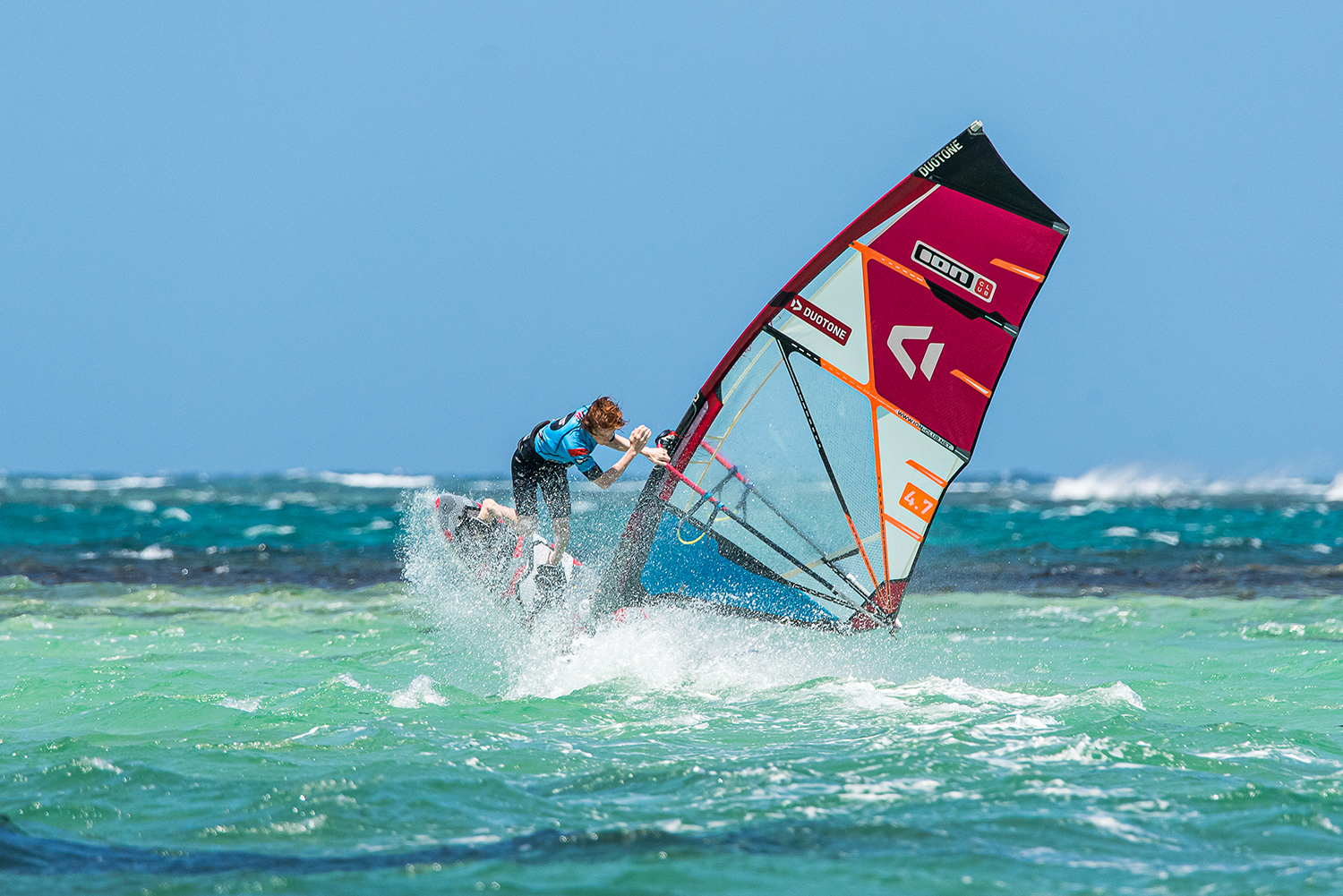 - If the wave catches you on the way out (and if you have time), bury the mast tip in the water facing the wave and hold onto the boom and mast (just above the boom) for as long as you can for a shorter swim, unless the wave is massive!