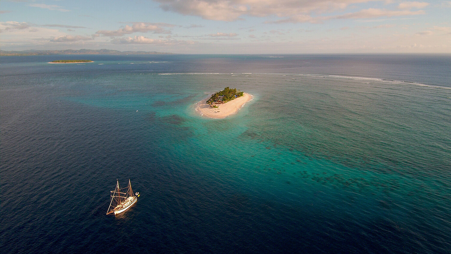 We had anchored in front of Namotu, a private island resort with a famous reef break where once a PWA wave world cup event took place. Right away I rigged a 5.0 sail and jumped into the blue ocean to catch a few “nuggets”. A few surfers around me didn’t seem to mind. The waves were small and the wind was quite light. It was a perfect warm up session with unreal water colours under my board, though it seemed like I was floating over dry reef with coral heads coming extremely close to my fins! I had some really fun turns on fairly long forgiving waves that were running all the way to a channel. I went back to the boat after a few hours, full of pure excitement that I really had made it to paradise.
