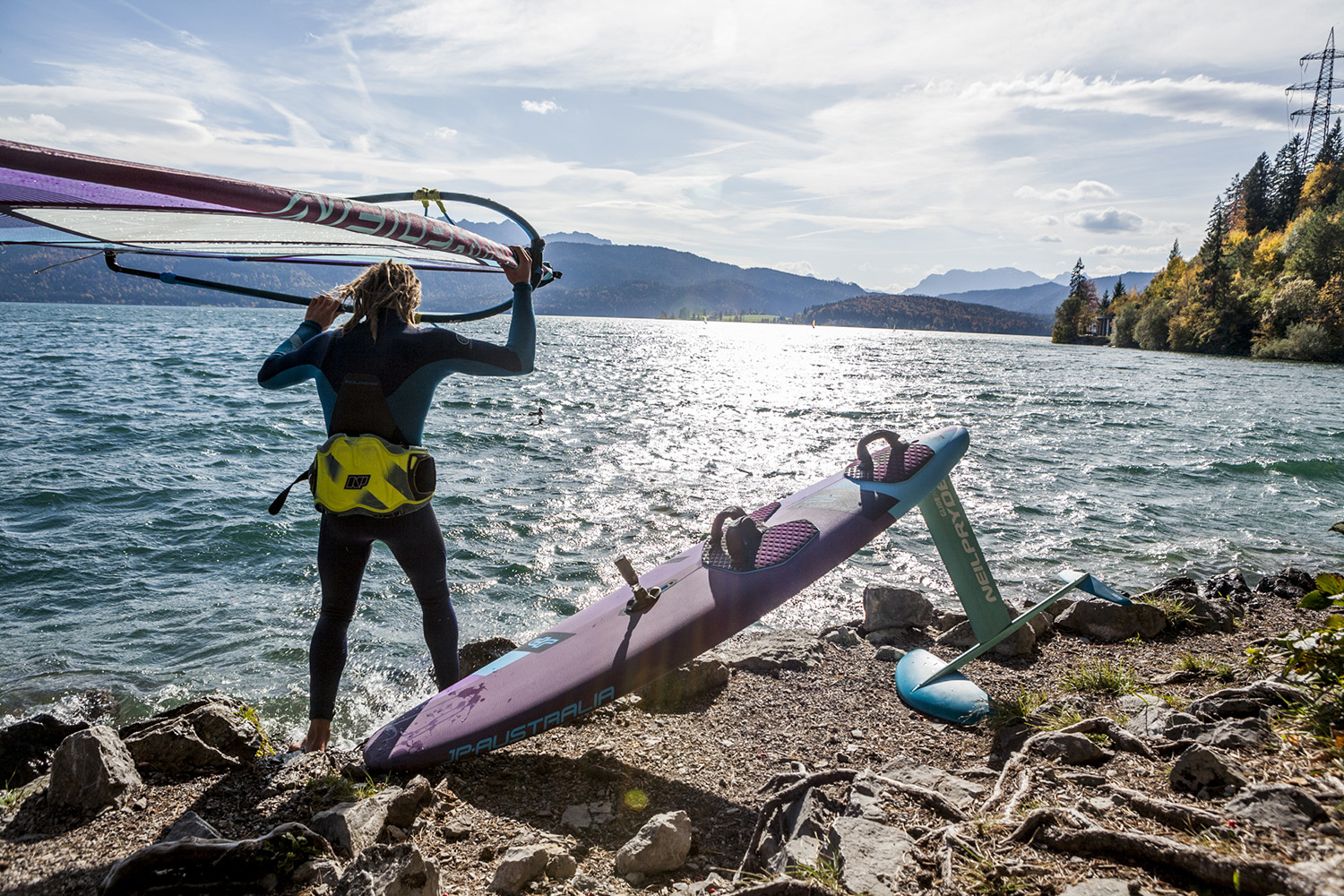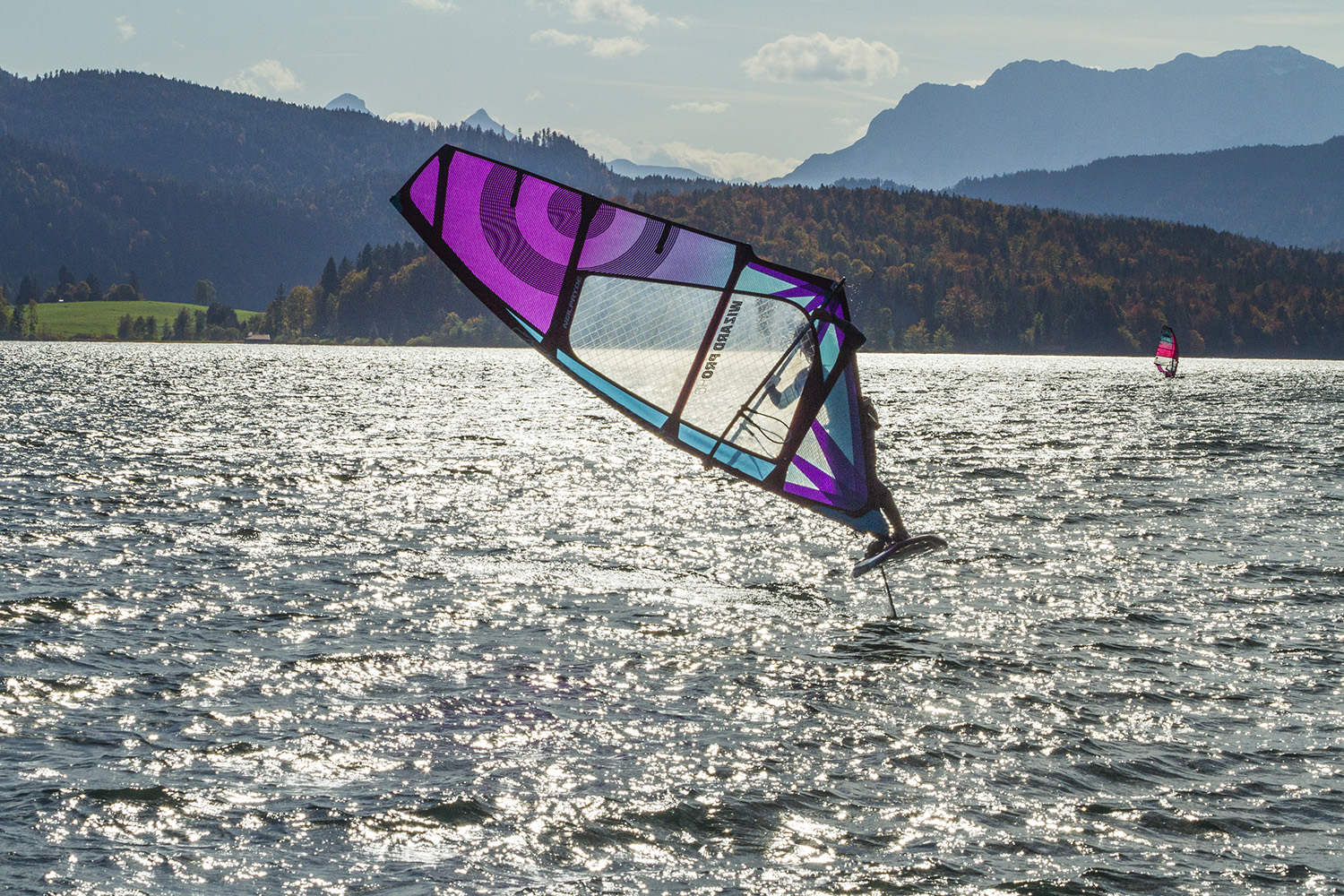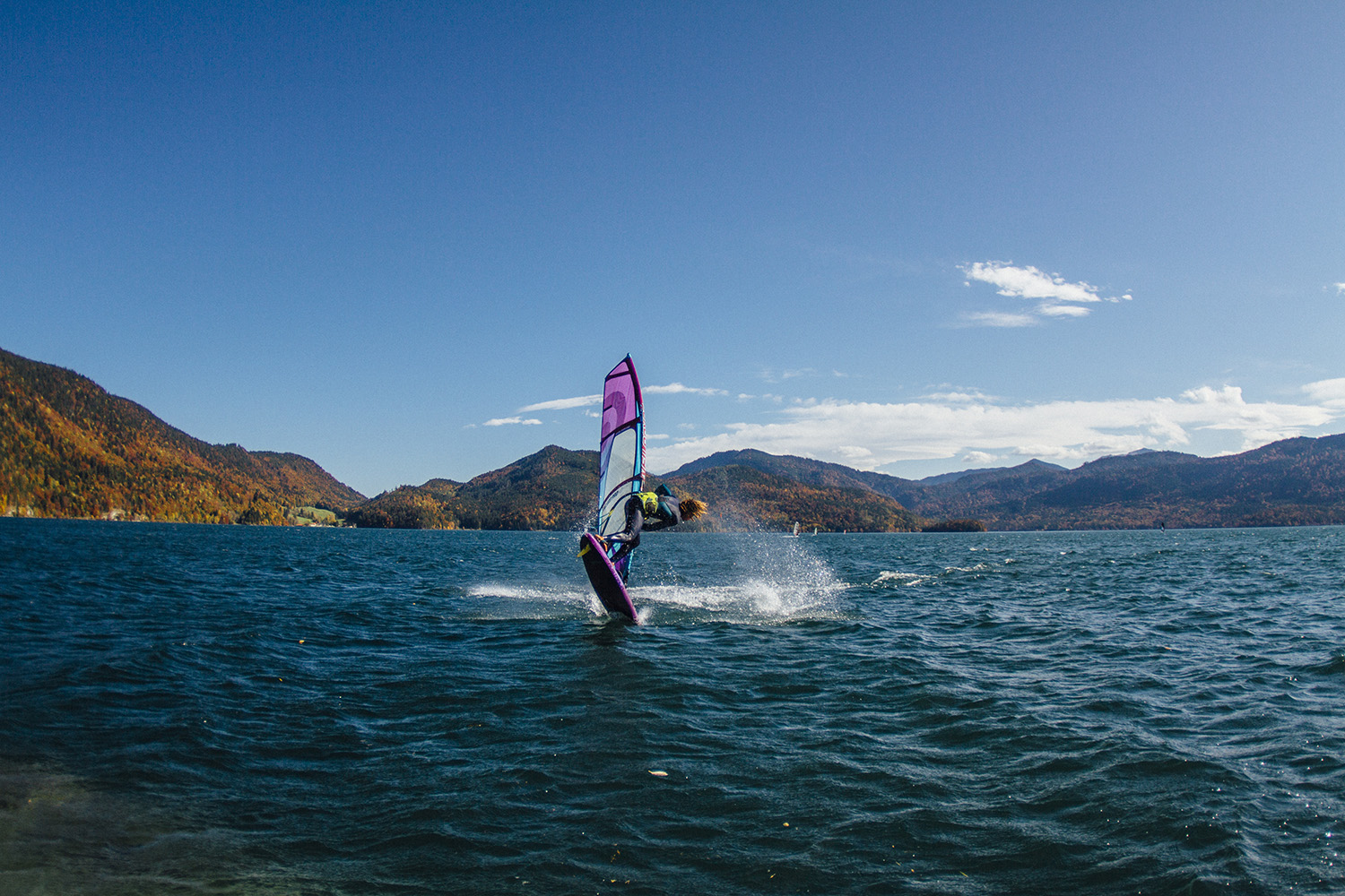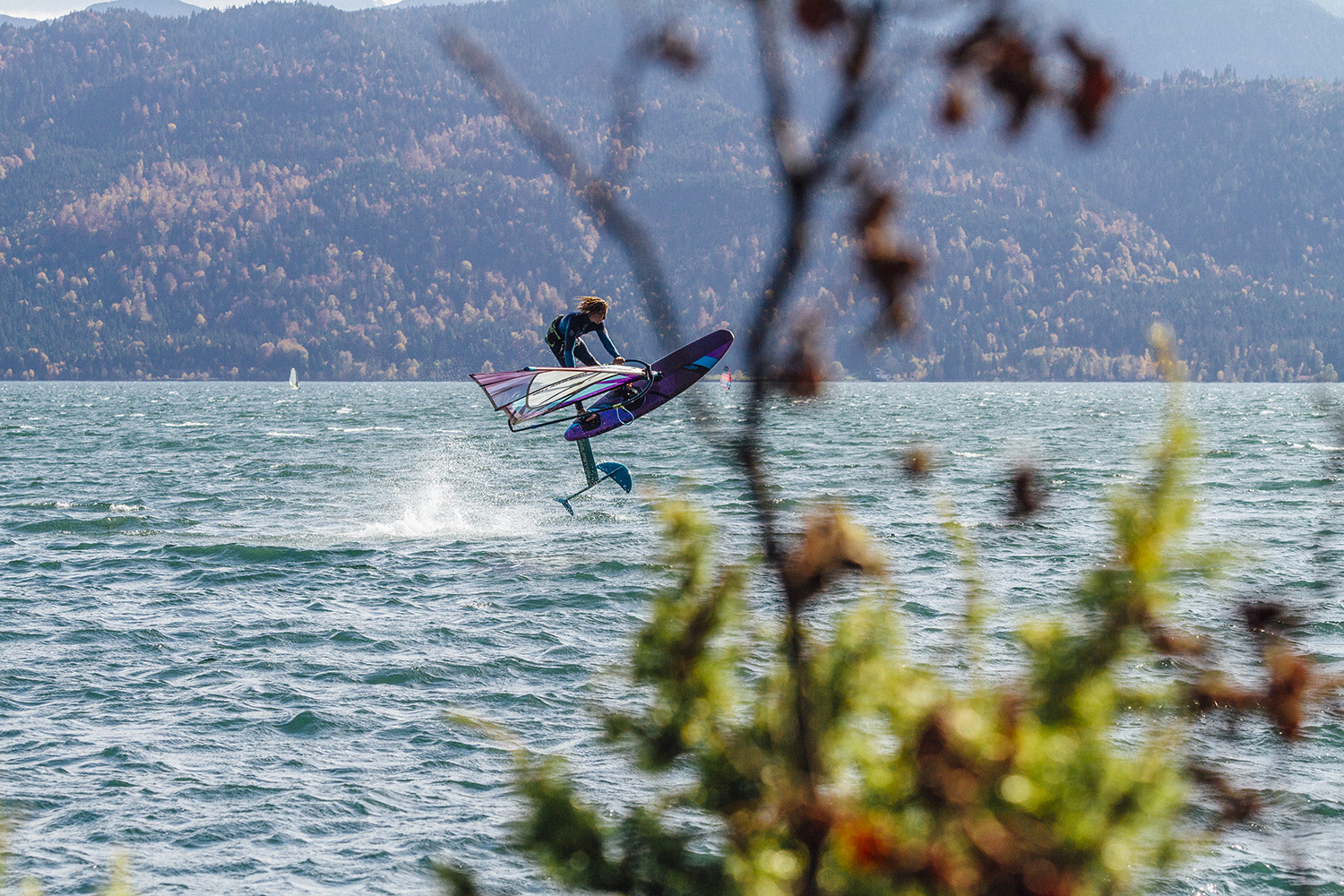 We are blessed with quite consistent thermal winds while the summer month between April and August with many days around 8-15 knots, before foiling came up we could maybe freestyle twice a week and now you are up to 5 times a week flying over the sweet water with a mind blowing view into the alps.