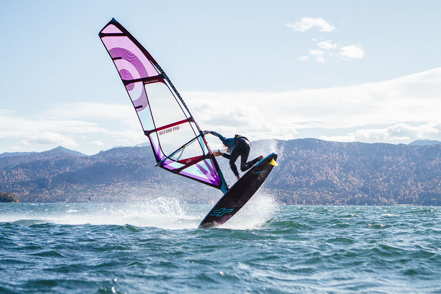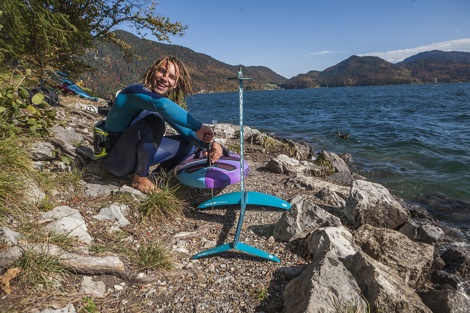 Andy Lachauer and Michael Berger came up with the concept of changing from freestyle windsurfing to foiling by using a regular freestyle board and changing only one screw. They headed to Lake Walchensee in Germany to test the idea, which worked well without having to change board or sail size. Andy answers some questions his kit set up and some tips on freestyling with a foil.
