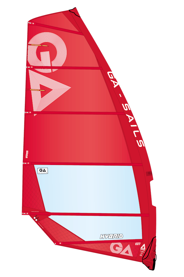 The GA Hybrid is the brand’s ultimate all-rounder that, in the smaller sizes, is geared towards freemove and graduates to a more freeride style in bigger sizes. The most interesting aspect of the Hybrid line is its adaptations through the sizes. The smaller sizes (below 5.2) are all-round wave sails that evolve into a versatile freemove sail between the 5.2 to 6.4 sizes and finally develop into a powerful freeride sail in the bigger sizes. This aspect of the range allows riders to have one quiver of sails with familiar feelings that provide the option to ride in various conditions and disciplines.