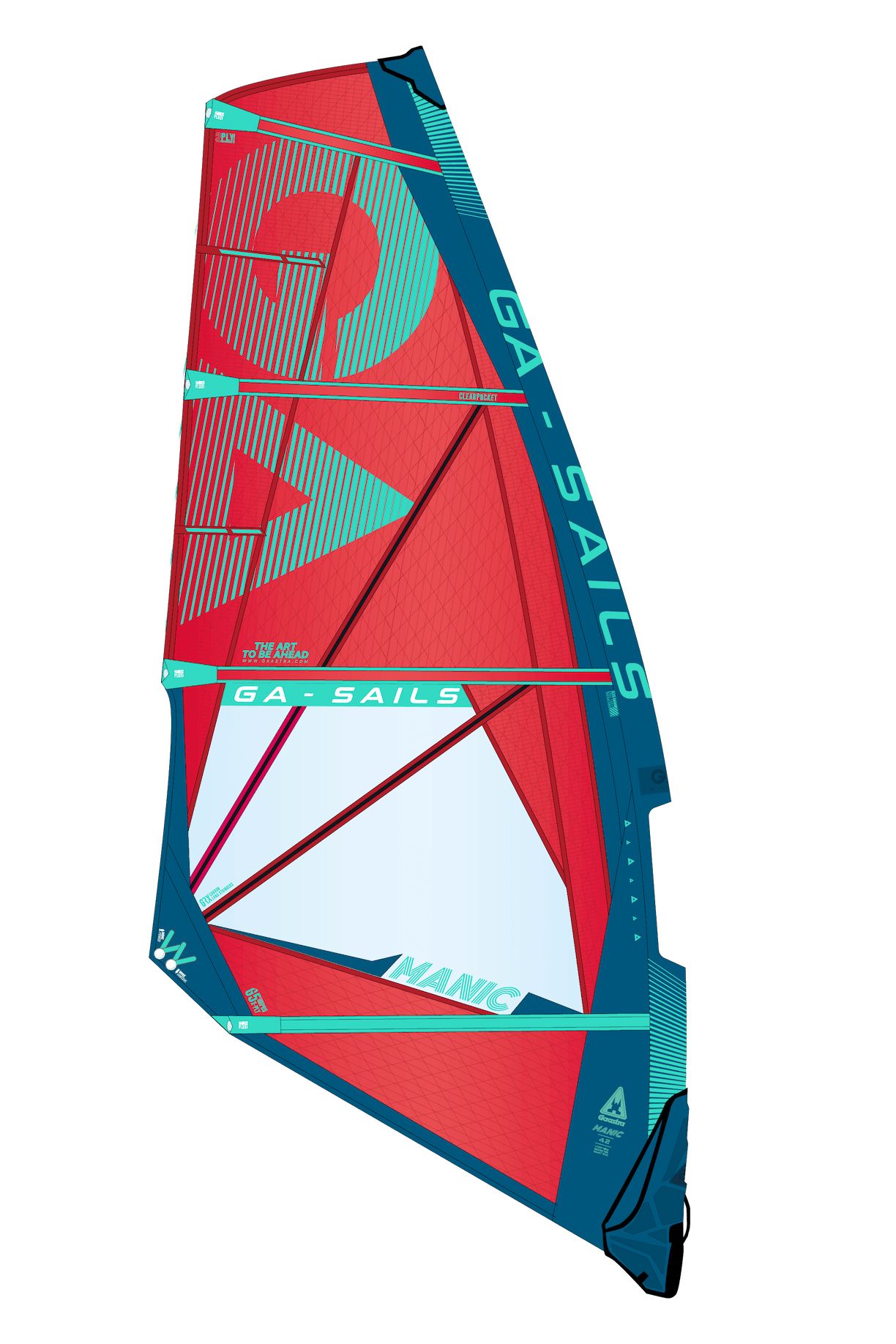 Finding power easily, the Manic provides you with confidence straight off the beach, while when getting going it offers positive pull and grunt as the sail fills in in classic GA style. The centre of effort is located slightly higher, which urges you to drive the board on to the plane and once planing and up to speed, it offers exceptionally easy handling and feels as though it is perfectly balanced in your fingertips. The power of the Manic helps you keep the nose pinned down in rough waters, which increases your ability to keep things under control in challenging sea states, or when there is a bump on the face of the wave that you need to negotiate. Through gusts, the Manic remains stable – neither folding or creasing – and it channels the extra power into additional speed and forward momentum. Possessing on and off power, the Manic maintains its effortless handing on a wave as it slides through the hands with ease, allowing you to place the rig in those critical positions, which allows you to concentrate more on the board as you look to drive the rail hard or snap a turn off the top, before exiting with power as the sail refills and pulls you back down the face ready for more.