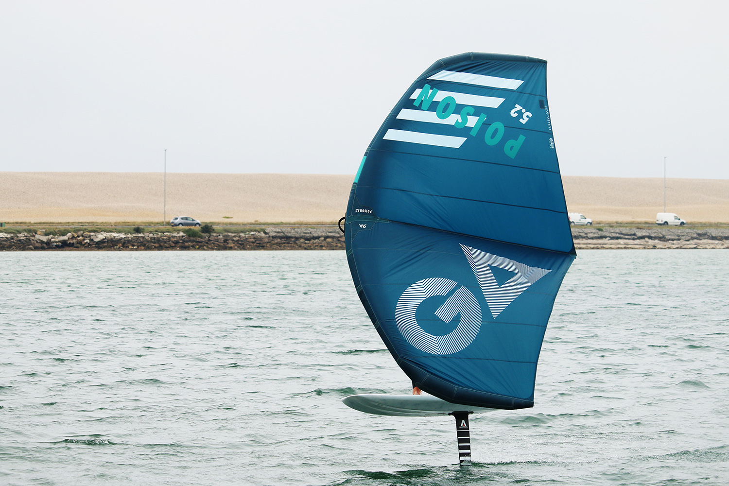In 2022, the Poison enters its third season of production, sitting alongside the all-round (and windowed) Cross wing as GA’s “feather-light performance” wing. A lot of work and development is said to have gone into its design, with a new outline, shaping and construction, targeted towards those that demand acceleration and upwind performance in instances such as catching waves. Inflation to the recommended 7-8 PSI is quick and simple, with a single bayonet inflation valve on the main strut, feeding the central strut via an adjoining tube. And a neat addition for this year: on the other side of the central strut, there’s now a dump valve for quick deflation, the simple shoulder bag supplied providing plenty of room to house the wing, however hurried your pack-down is. The handles have been reworked for the new season too, with a much firmer form and a carefully repositioned neutral handle on the LE strut. There is then a single front hand handle for simplicity, complimented by three for the back hand to determine the power delivery required. The leash supplied is made from elasticated Dyneema and was the right length for most, albeit a common comment was the desire for a buckle incorporated at the wrist cuff, for easy single hand fixing.