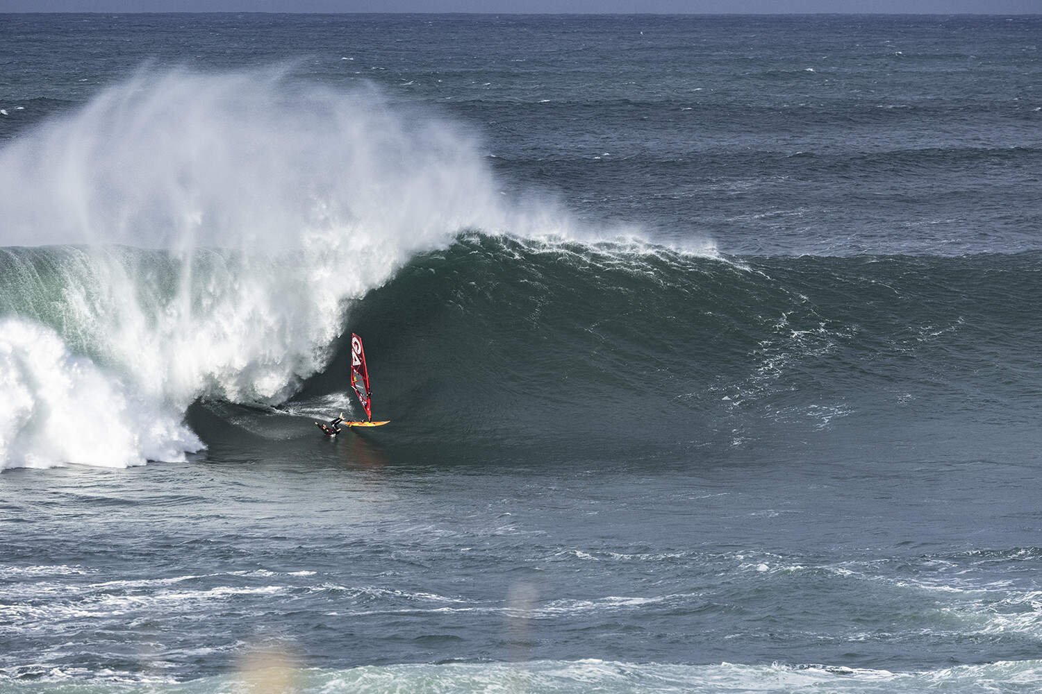 However, such a mission cannot be planned down to the last detail. Our jet ski driver in Galicia surprisingly lets us down. We are on our own. Isla Plancha’s wave is just perfect – and a real beast. The jet ski support would have had many advantages, but you can do without it. We look at the entry and exit options, weigh up the risks and swimming distances and go out on the water as soon as the wind is strong enough at noon, just as Thomas predicted it would be.