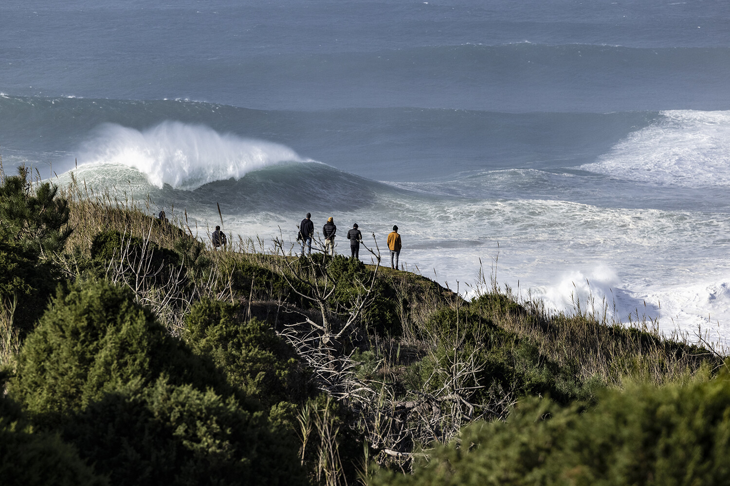 Is it crazy to be chasing giant waves in Europe in early January? From Hamburg to Lisbon, on to Galicia, back to Lisbon and back to Hamburg in just four days. With the first bottom turn in front of the rocks of Isla Plancha, any doubts vanish. It’s just a treat to blast down double mast high waves with a perfectly clean face and a full shoulder. How different this feeling is from my routine of the past few months. Thomas is also equally enthusiastic and calls out to me that his first three waves have already made the trip worthwhile! Unfortunately, we did not score many more waves, because the wind started to turn offshore and died almost completely. I swim in the lineup for a good hour and wait for the wind to come back.