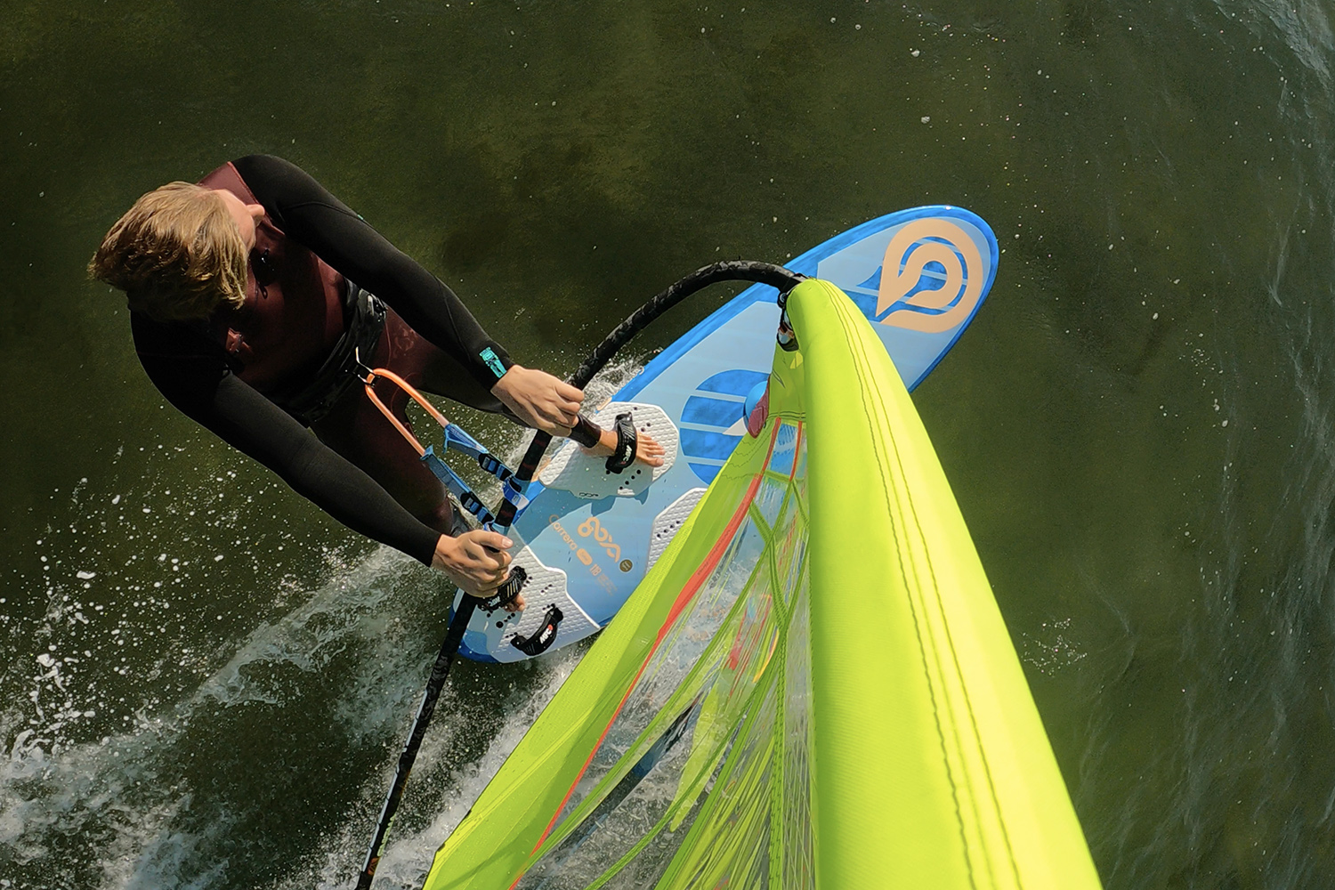 This is the first chance we’ve had to try the Carrera, a very different prospect to the freeride Volar. As power is delivered, the board releases smoothly, encouraging the rider rearward, the straps easy to locate. It has a narrow, gunny feel, most familiar to those that have been windsurfing for a good while, and it dances over the water, reaching a very respectable speed easily. Fast, particularly off the wind, the tail of the board always feels connected, enhancing the sense of control and practicality for coping with challenging conditions. This is enriched further by the wide stance the Carrera’s footstrap plugs naturally encourage, helping the rider adopt a lower centre of gravity and play the weight distribution between their feet. Less of an asset when trying to drive upwind positively, but off the wind, the Carrera really encourages the rider to lock in and push, the fittings providing excellent comfort and security. In the gybe, the Carrera does its ‘freecarve’ tag justice, really biting in well as the rider commits to the rail. In flat water or rolling swell, we found you can really commit assertively and the 118 responds, but in short sharp chop, we found the Carrera’s low shoulders do have a tendency to catch at times. To cope, we found ourselves backing off a little before entering the gybe, tightening the turn mid-transition, and relying on the width and volume in the tail to help maintain speed through to the exit. Comfortable to use for long periods and blasting over great distances, the Carrera is all about control and easy accessible speed no matter what the conditions.