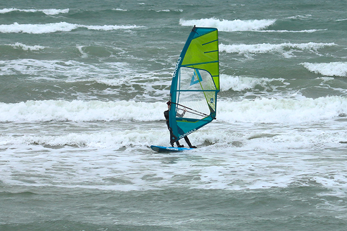 Whilst stated as compatible with an SDM also, the Torro was rigged and tested on a Select 430 cm RDM here, setting easily with the use of Gunsails’ trusty visual trimming guide F.R.E.D. (Fast Rigging. Easy Doing). There is only a moderate amount of luff curve in the Torro, meaning it requires relatively little effort to downhaul correctly, the leech falling away evenly down to batten four. Nevertheless, the sail’s draft remains relatively flat, its two lower battens protruding significantly beyond the leading edge of the mast. On the water this translates to a very easy and balanced feeling in the hands at rest, the Torro powering smoothly and gradually as pressure builds. It has a light and tolerant nature, the movement in the luff sleeve and large Dacron luff panel helping the sail to breathe and endear itself to the more hesitant rider. Equally, in the hands of the more experienced, the performance potential of the Torro was easy to unlock and appreciate, responding well to pumping and accelerating in the hands through gusts, before gliding efficiently through prolonged lulls, impressive for a sail with such a dynamic profile. The centre of effort is forward facing and relatively high, pulling the rider upright and over the board, whilst the boom angle to the single clew eyelet ensures a sense of connection and control through the back hand at all times. As the wind strengthens, the Torro’s natural range is displayed, twisting smoothly with minimal flutter as it retains its handling manners, the draft locked forward and steady. In transition it enters with speed, before going light and neutral when sheeted out mid-transition, regaining impetus steadily once sheeted in on the new side. It may not have the sharp response or precision some expert riders demand, yet its controlled accommodating delivery means it can be used confidently in a number of roles and environments. From powering wide freeride platforms, to freewave and even large wave boards, the Torro’s versatility makes it easy to get on with.