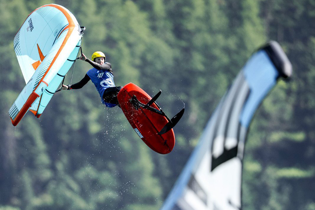 A picture-perfect morning was how the final day started: With no cloud to be seen, bright blue skies, and a forecast that showed promising wind, the stage for some thrilling final heats was set. In the men’s surf-freestyle discipline, the just 16-years-old Chris Macdonald (USA) was going massive in all heats so far. His final against Stefan Spiessberger from Austria was one not to be missed. Both riders put on an incredible performance with Macdonald scoring 32.93 to Spiessberger’s 25.17. Titouan Galea (New Caledonia) won his 3rd place final to secure the third place. Over to the women’s surf-freestyle, the final was between Paula Novotna (CZE) and Spain’s Nia Suardiaz. With 21.8 to 19 points in this last heat of the competition, the Czech rider was victorious in the end. Flora Artzner from France dominated her 3rd place final and completed the podium.