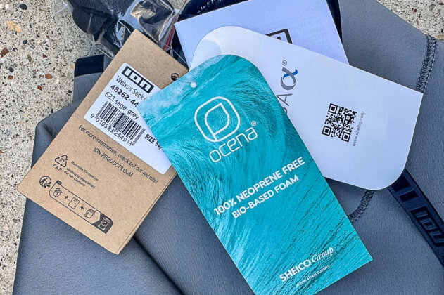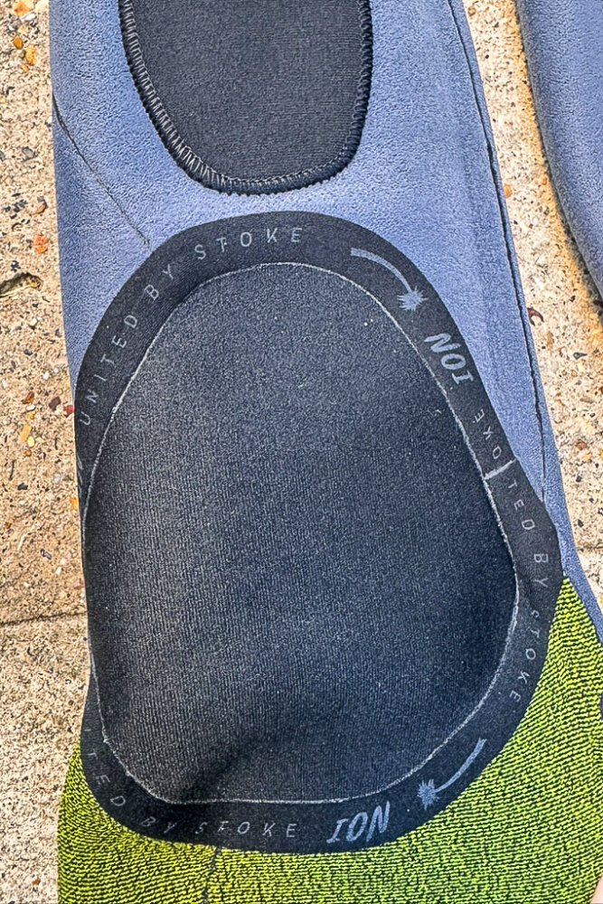 The likelihood is that you already have a wetsuit or two, so you’ll be looking to complement the ones you already have. I was looking for an autumn/early spring suit as I have summer suits and a 5/4 for brutal winter days. So, I reckon a 4/3 is a good option and the appeal of easy access is very important to me. Right in the middle of Ion’s five suit range is the Seek Core at £269 for the 4/3 back zip. I’m a54 XL at 95kg and 6ft… choice made. Arrived PDQ in a very natty ‘sage grey’ with a plush green lining. Normal range of swing tags plus an interesting ‘Water Defender Leg’ pack, more of which later.