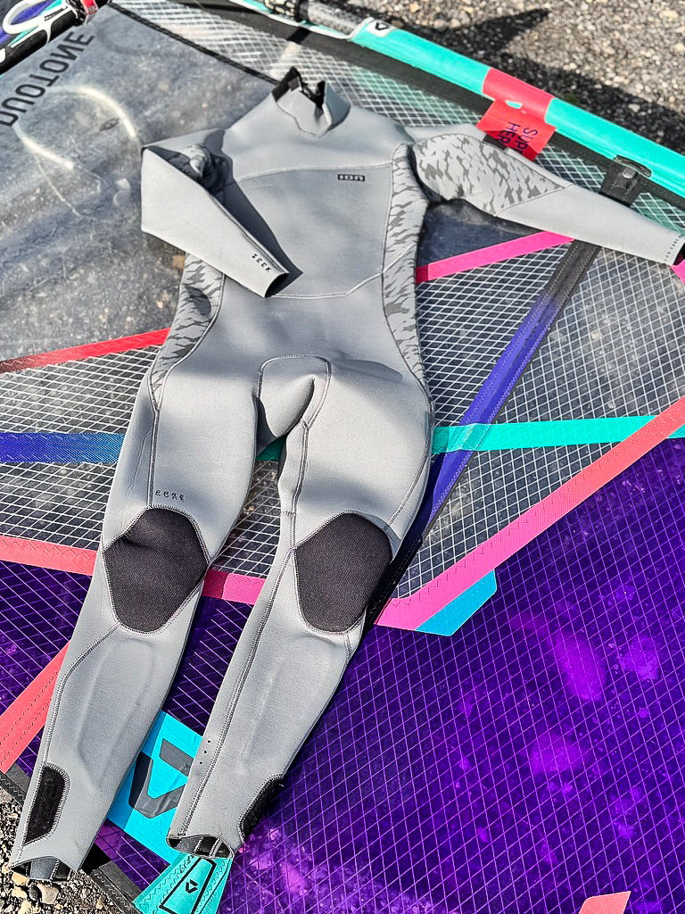 You should be able to forget the wetsuit once you’re on the water, there’s already enough to deal with. That’s exactly what happens with this Seek Core, from water-starting to rig pumping, the flex and comfort is very impressive, the seam-free shoulders undoubtedly helping with this. In my opinion there is more water flush with a back zip compared to front zip suit, but for my use this is fine. This small volume of water flushes through and out of the leg and back gusset drain holes, no problem. Water starting is the main culprit, with the sudden extension of the rig above your head. A little cooling is sometimes welcome for the way I will typically use this wetsuit, i.e mellow days on big freeride board and Windsurfer LT. Getting too warm can be an issue, so the ability to loosen the neck seal and even slide the zip down a bit is quite a relief.