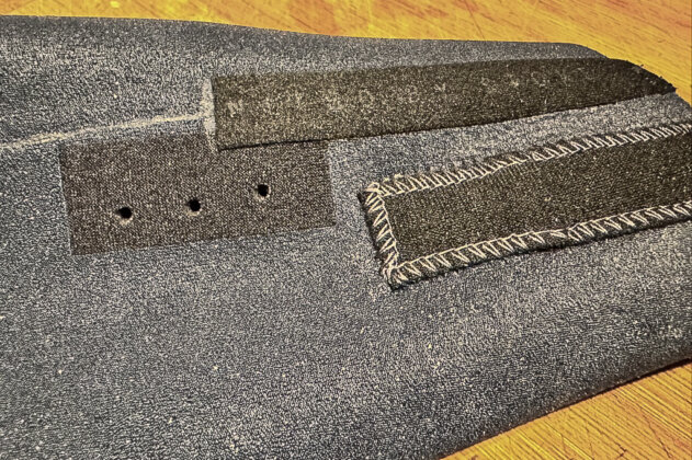 For me, the ease of putting on, and taking off, a back zip wetsuit is the reason for choosing this option and so it proved, especially as the inside materials (Hot Stuff and Silk Stuff) make access so easy. The ‘Watergate’ back gusset comes right up over the back, so any water entry is kept away from the body. The zip puller is really long, I used to have to add a bit of rope, no problem now. Obviously at this level, seams are glued and blind stitched, plus tape-reinforced in critical areas. Knees and shins are well reinforced without any loss of comfort.